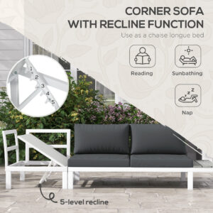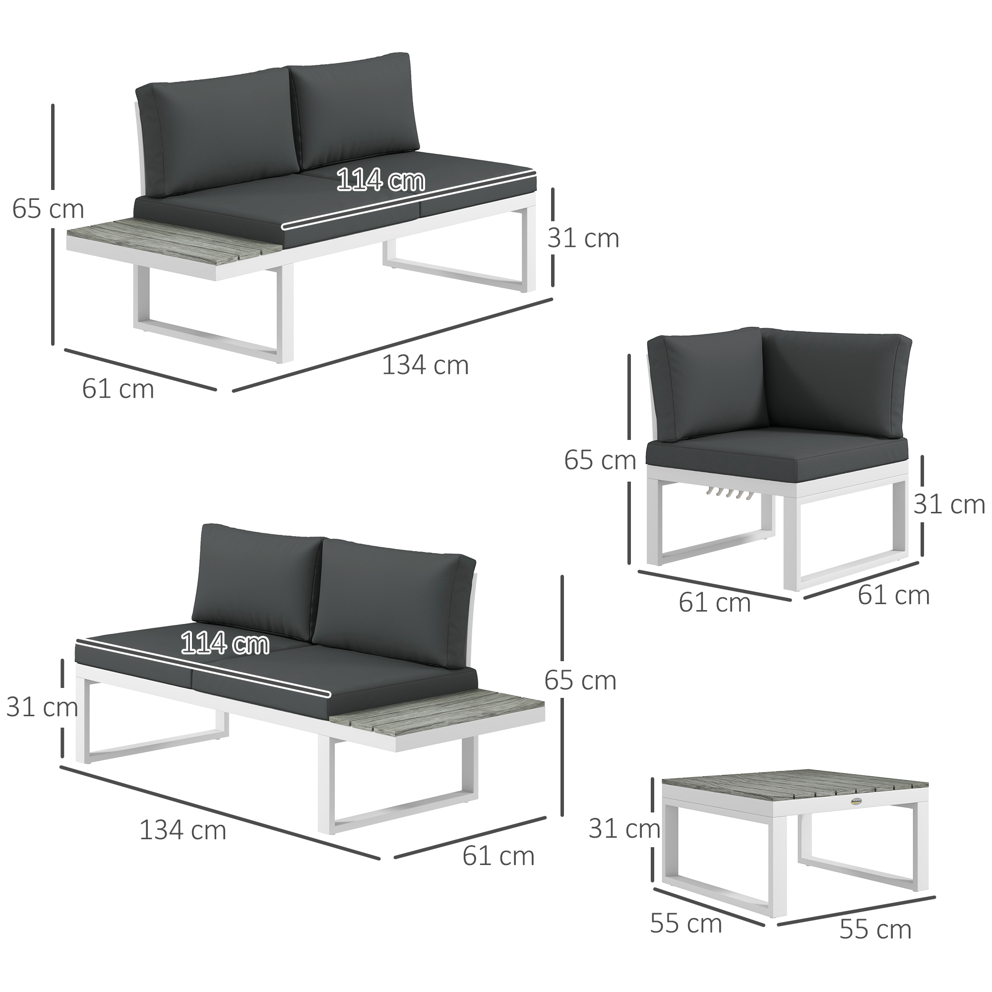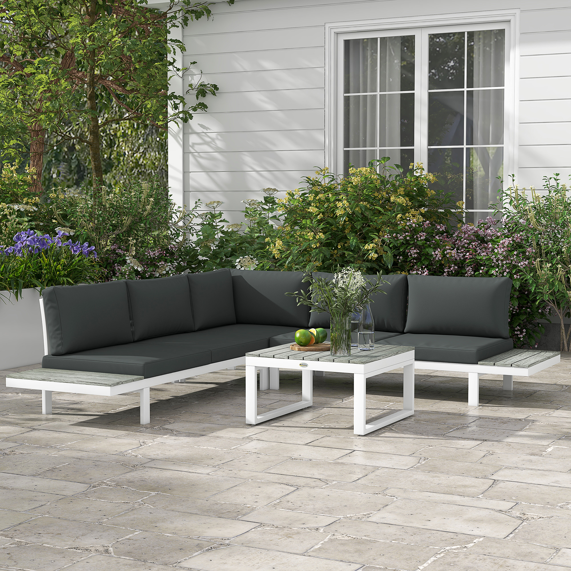 Enjoy the outdoors in style with this Outsunny set. Comes with two loveseats, a corner seat and a matching coffee table. Powder coated steel means each piece is strong, with the padded cushions keeping you comfortable. The small table included means a handy holding place.