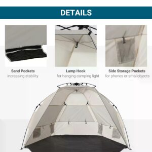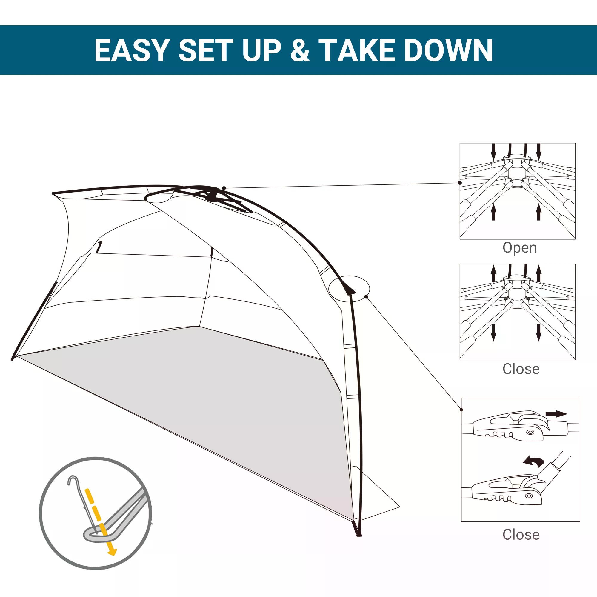Keep yourself safely protected when at beach with this pop up shelter from Outsunny. The pop-up design means it’ll be up in seconds, and folds back down just as easily. Using fibreglass for the core, it stays in shape all day long, made into a two-man size so you can enjoy the sea and sand together with a friend. The beach shade large open front allows you to enjoy the weather with sufficient protection. Four inner storage pockets and three mesh windows for even more ventilation.