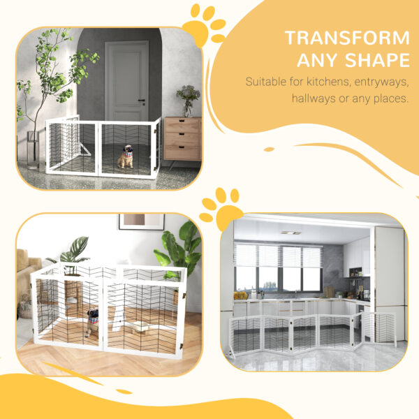 Turn pet safety into a delightful experience! Our PawHut eight-panel dog barrier offers a style, versatility and durability fusion. Its foldable design ensures easy storage, giving you clutter-free space. The support feet with non-slip pads keep it stable and stylish. A modern dog gate that complements your home d??cor, you’ll create safe boundaries for your companion, making pet parenting that much easier!