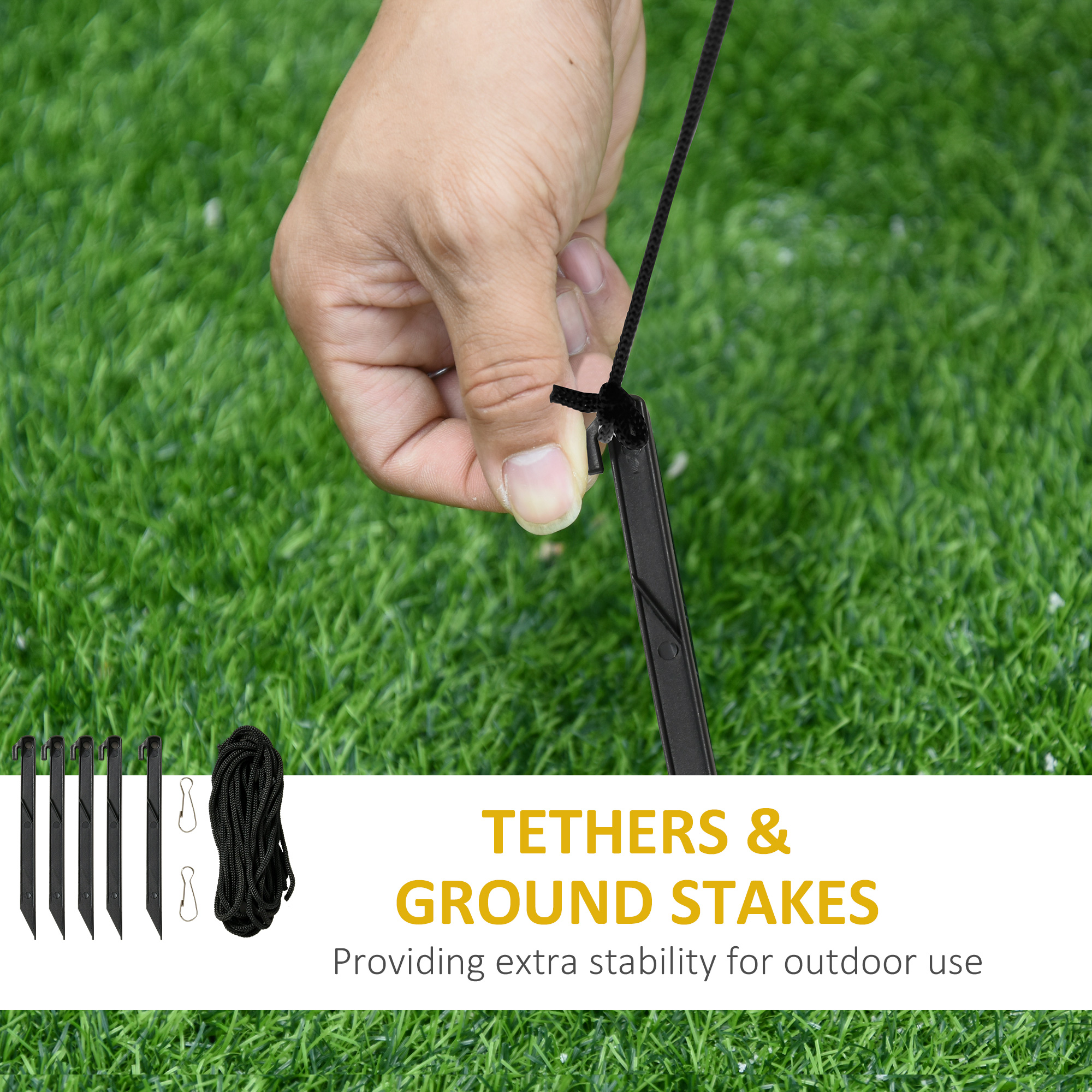 - 5 ground stakes, 2 drawstrings and 3 sandbags ensure the stability and sturdy standing