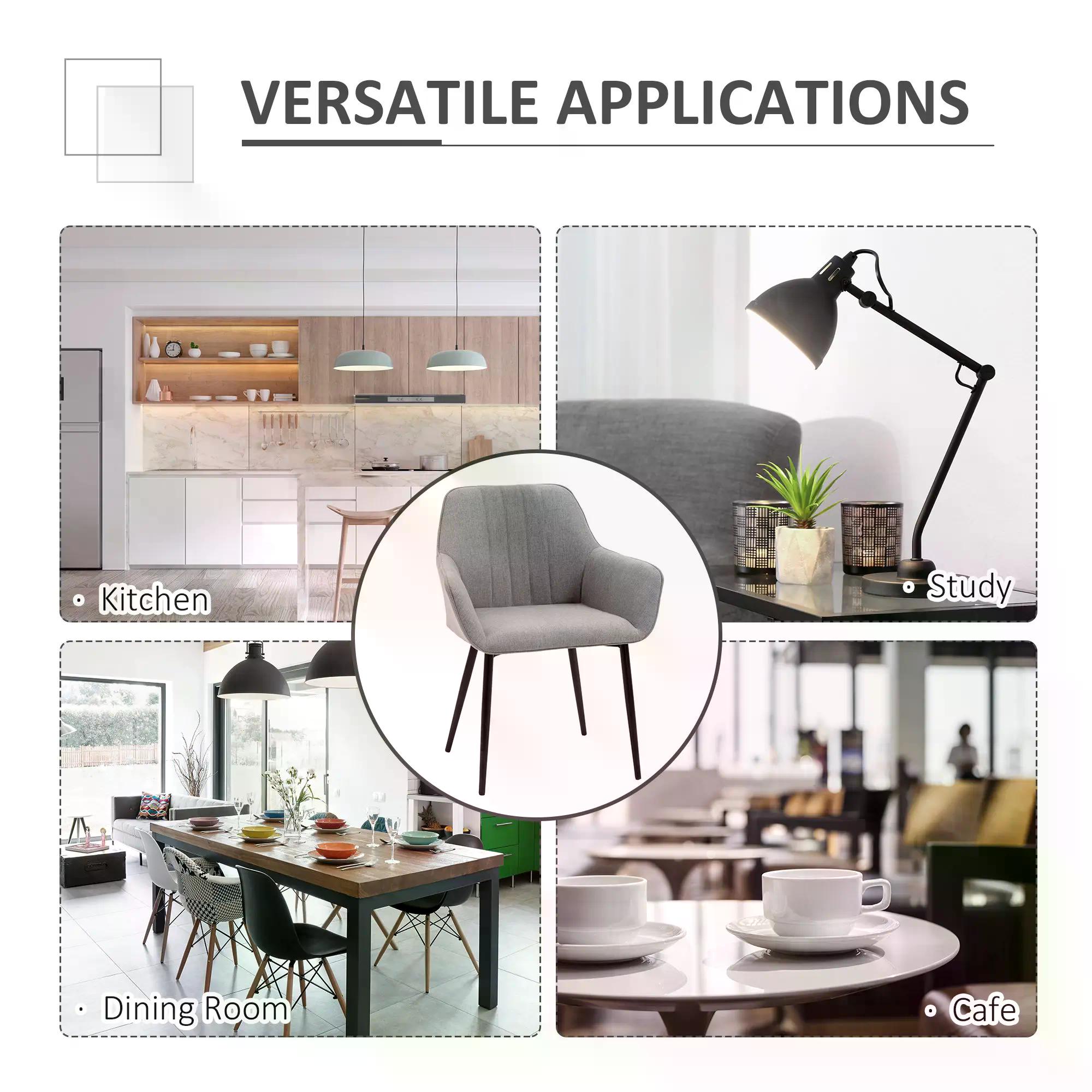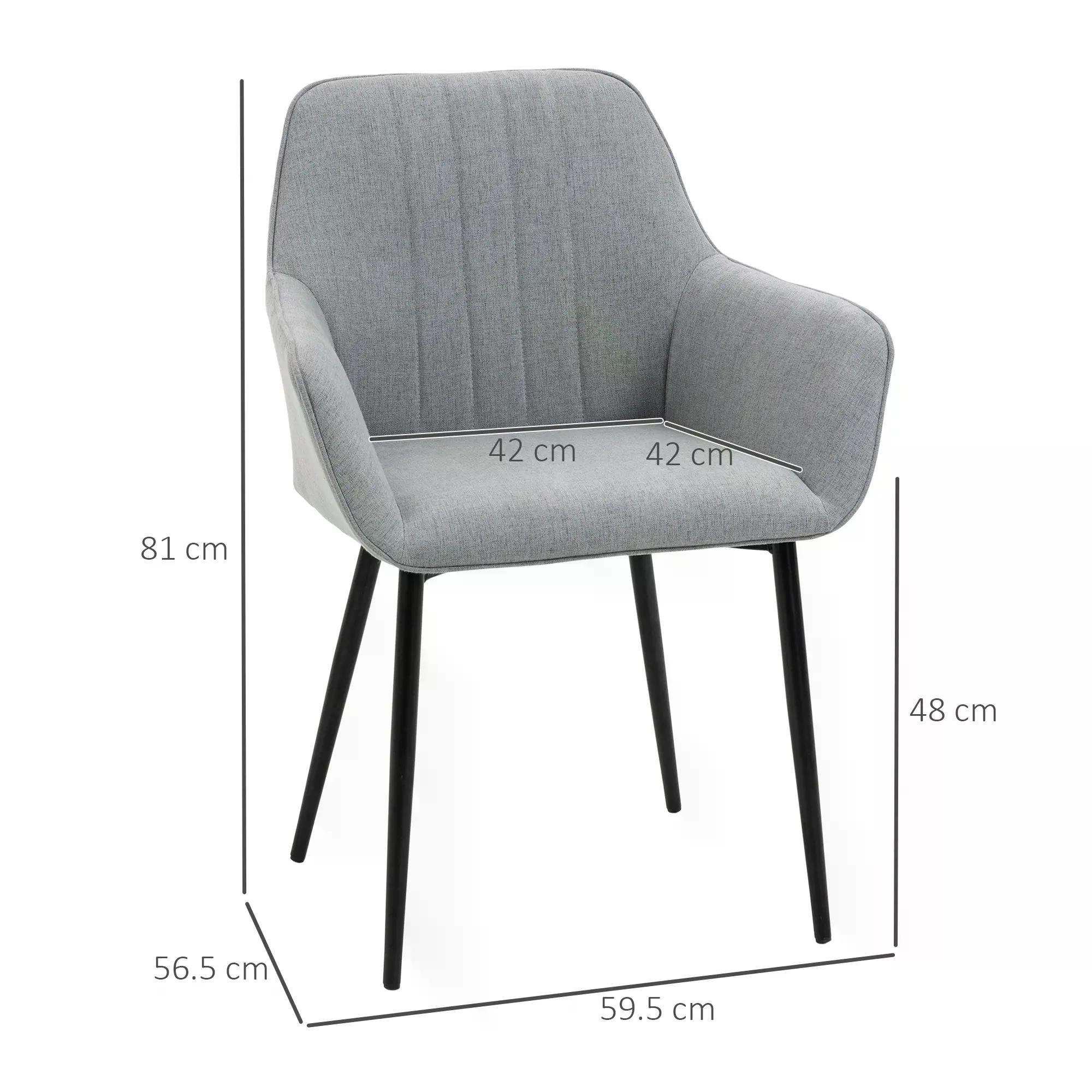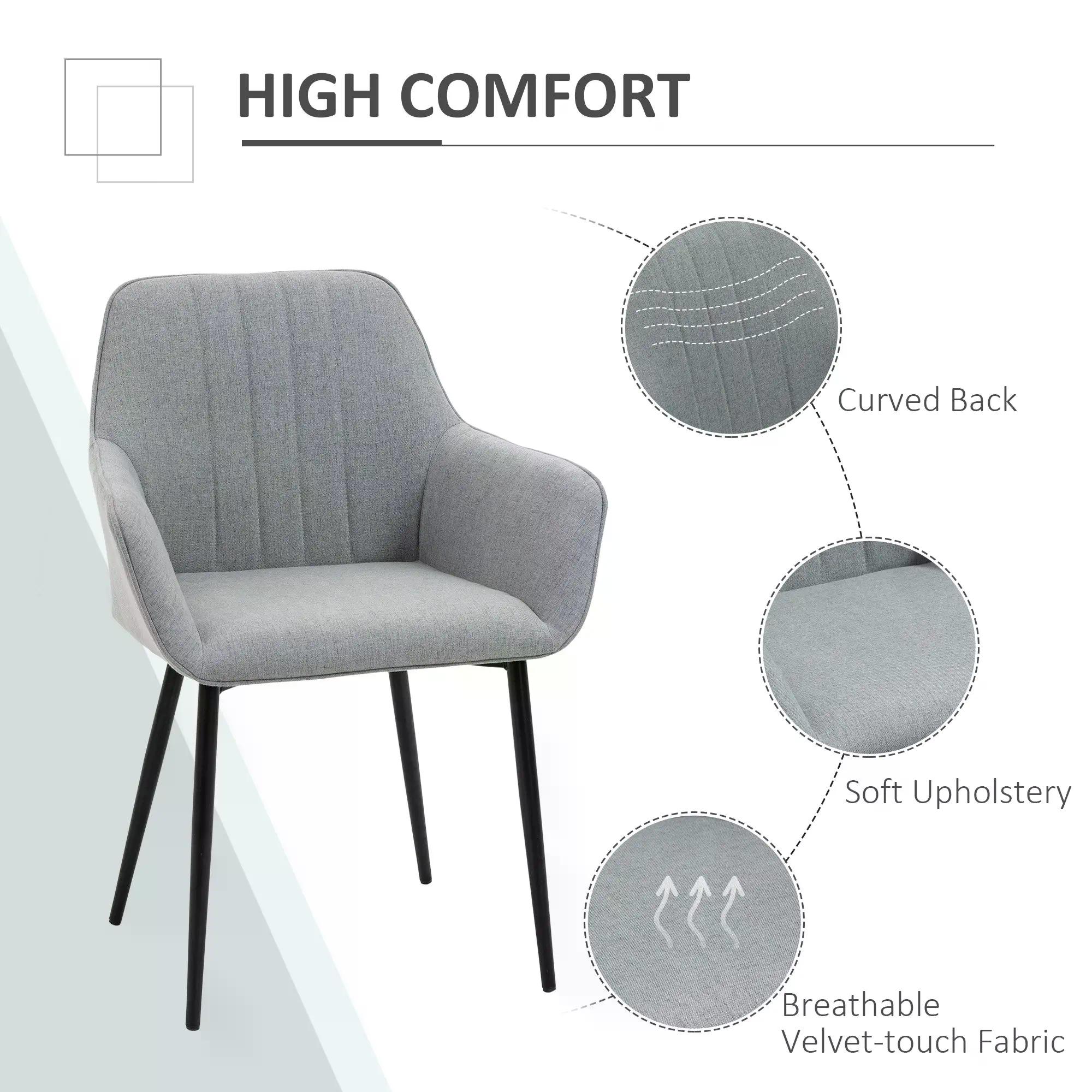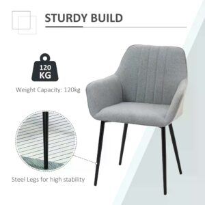 HOMCOM Dining Chairs Upholste Linen Fabric Accent Chairs with Metal Legs, Set of 2, Light