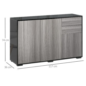 This HOMCOM large and oblong cabinet is a durable and stylish addition to every home, keeping your space clean and tidy with ease. It’s made from MDF for a durable structure, with anti-tipping straps on the back for safety. The practical design, with the push-click drawers and cabinet doors makes them quick and effortless to open and close. The elevated base allows air to flow through for freshness. An effortless way to bring in sleek style into your living space.