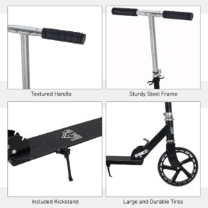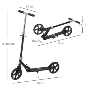 The HOMCOM kids folding scooter is sure to light the way for nonstop fun! Constructed with aluminum frame, the scooter can support up to 100 kg. The height can be easily adjusted to fit various height need. The braking function of rear wheel brake pads and low deck ensures your kids a safe ride experience. Simple design and color will surely become your sweeties preferred method of transportation! And the foldable function provides enough possibility for your outing and storing.