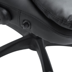 The massage office chair from HOMCOM combines traditional style and comfortable features. The heat and massage functions operate independently, giving you the freedom to customise your experience, with the faux leather design making it a classic executive design. Thick padding for comfort, tall back and armrests for support. Completed with five wheels on the base.