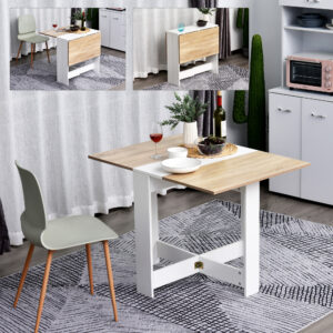This versatile folding table from HOMCOM is designed to serve 6 people in expending condition and save space in full folded condition. The switch is achieved via the easy-to-operate mechanism on the bottom. It can easily convert by lifting the table top and sliding out the support legs on either site, making it ideal to use as a dining table, workstation or a writing desk. This two-tone design will surely add a touch of elegance to match any decor in your room.