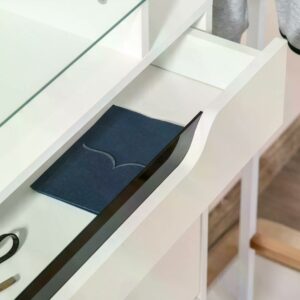 • Multi-storage: The slim shoe storage features two flip doors, a drawer and a top glass shelf – plenty of storage for keeping the home and office tidy.