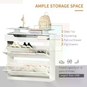 HOMCOM Shoe Cabinet with 3 Drawers High Gloss Storage Cupboard Tipping Bucket with Flip Door Glass Top Adjustable Shelf LargeCapacity for 14 Pairs
