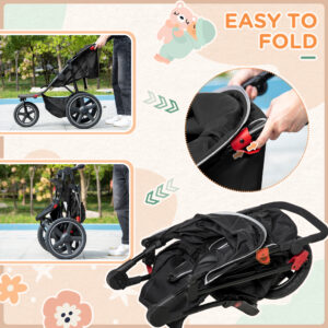 Need to get around with children? Make it easy with this HOMCOM stroller for toddlers. With rubber tyres, the wheels can swivel and lock, keeping the ride smooth. Kids will sit comfortably, thanks to the reclining backrest, whilst the seatbelt and bumper bar keeps them secure ?? the reflective strips ensure you stay visible. There’s an adjustable canopy for shelter, whilst the basket at the bottom lets you store your things. The baby pushchair can be folded for easy storage and carrying.