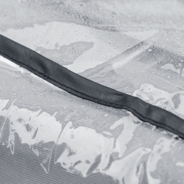 - Rain cover has a rear opening for pets, providing easy access
