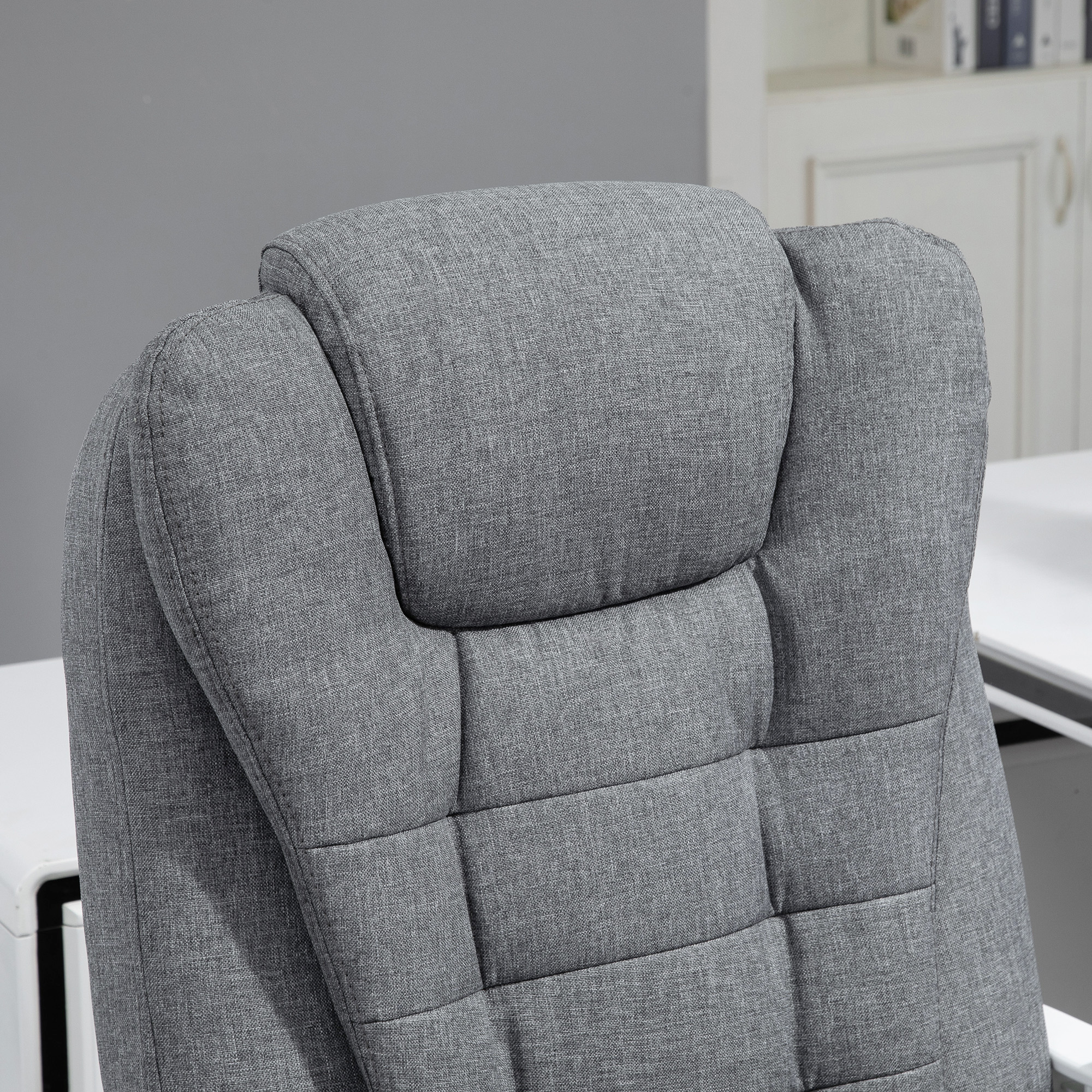 Work and relax, with this Vinsetto massage office chair. Wrapped in linen-look fabric, this computer chair is comfortable to the touch. But, most importantly, it has six heated massage points – four on the back, two on the seat: simply turn on the remote and relax. The seat gives wide sitting room, a high back and arms for support. With a 135?¨ reclining backrest, finished with a manual footrest to elevate your lower body with ease.