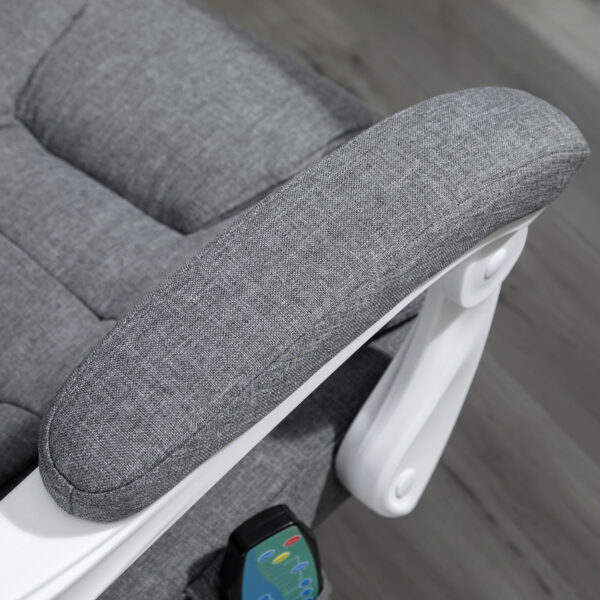Work and relax, with this Vinsetto massage office chair. Wrapped in linen-look fabric, this computer chair is comfortable to the touch. But, most importantly, it has six heated massage points – four on the back, two on the seat: simply turn on the remote and relax. The seat gives wide sitting room, a high back and arms for support. With a 135?¨ reclining backrest, finished with a manual footrest to elevate your lower body with ease.