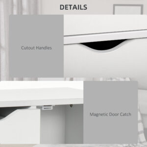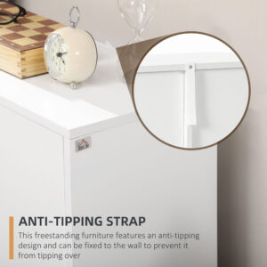 Do you need more bathroom storage space? Of course you do. This HOMCOM bathroom cupboard gives you that extra boost. It comes with four drawers and a two-tier cabinet – room for cosmetics, cleaning products, towels and more. Cut-out handles to open each door easily. Bathroom floor cabinet comes complete with anti-tipping straps to secure to a wall safely.