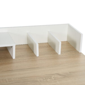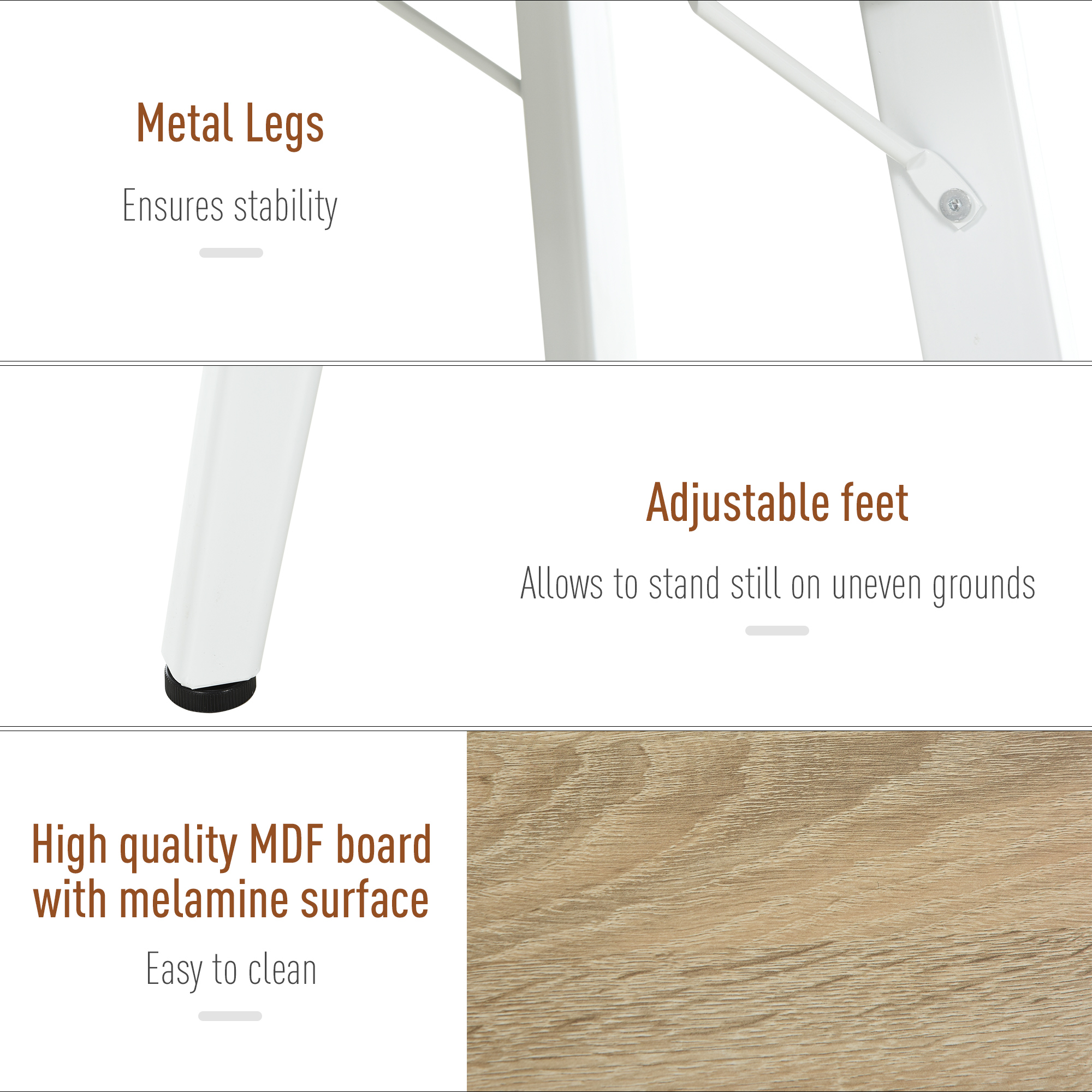 Keep your mind focused whilst working with this brown and white desk for small spaces from HOMCOM. Its modern design is perfect for those who love to organise – featuring a drawer, three small slots and a large slot – just the right amount of space for all your papers, folders and stationery. The metal frame ensures durability, with the four thick legs providing balance. This study desk is finished with foot pads to protect the floor.