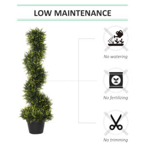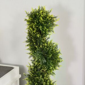 Bringing beautiful greenery into your home doesn’t get much easier than this. These 2 potted outdoor plants will liven up your space without maintenance. Come in a set of two, so you can create a matching look in the home and outdoors. Made from plastic for long-time use, the premium quality holds a realistic colour. The fake tree is tall, and the spiral shape adds to the beauty. Our indoor plants both come with a pot, so you have everything you need in the package.