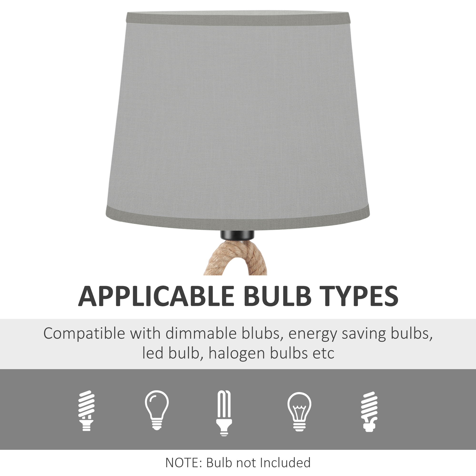 - Color: Light grey lampshade, Brown rope base