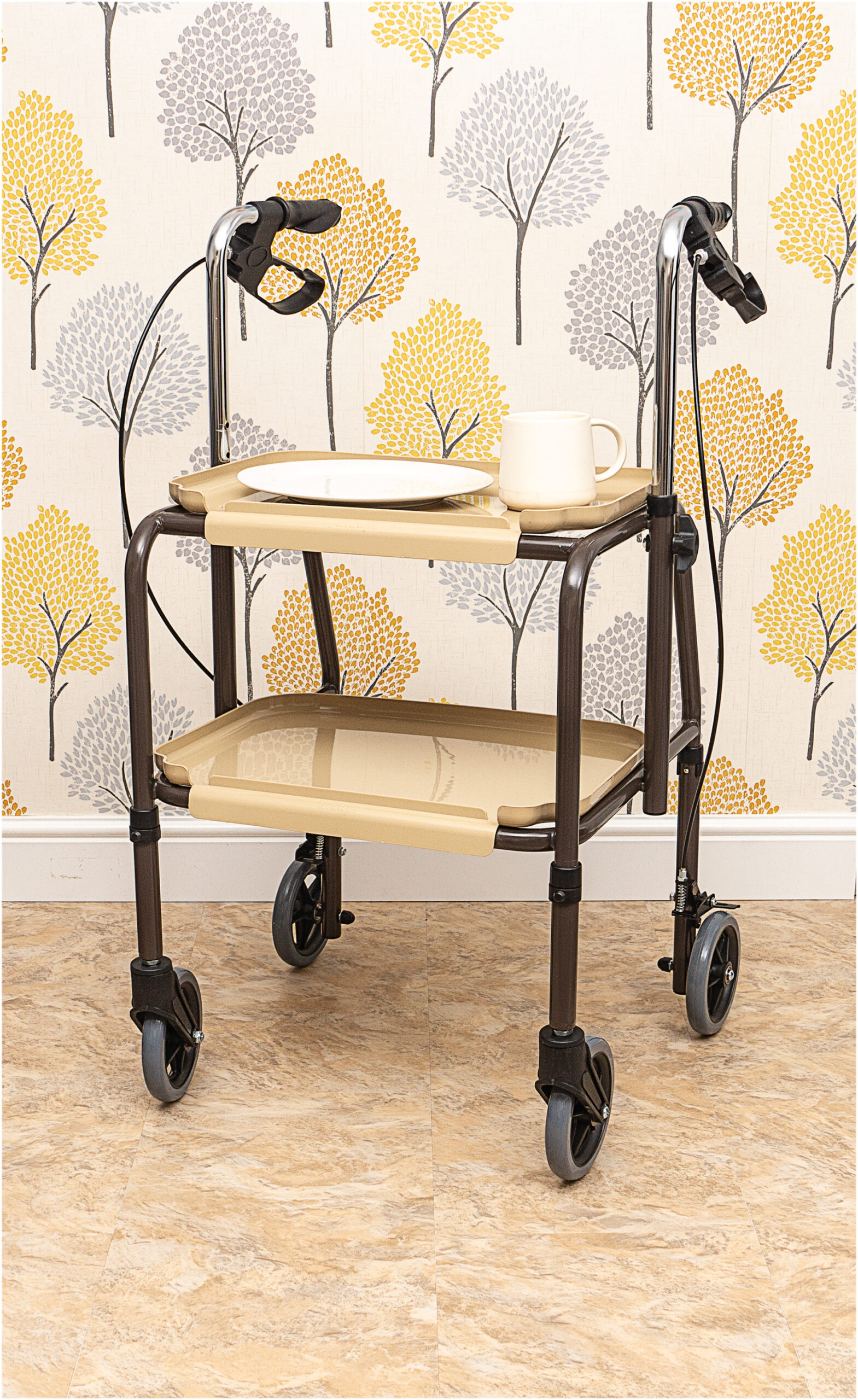 - Handy wheeled trolley is ideal for transferring meals/drinks between rooms at home