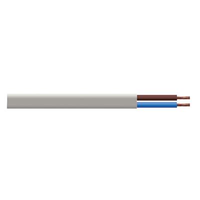 Oval profile cable used for indoor applications in the connection of double-insulated light electrical equipment to the mains power supply.