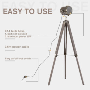 This industrial floor lamp from HOMCOM comes with solid pine legs in old wood color and a retro searchlight style shade in rose gold, decorating your home. The tripod base can fold compact for easy transportation and space-saving storage when not in use. The tripod lamp’s lampshade and the height are adjustable so that you’re able to choose an ideal position to light up your bedroom, study room, living room, and more. Bring the tall lamp home while making a statement in any home decor.
