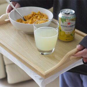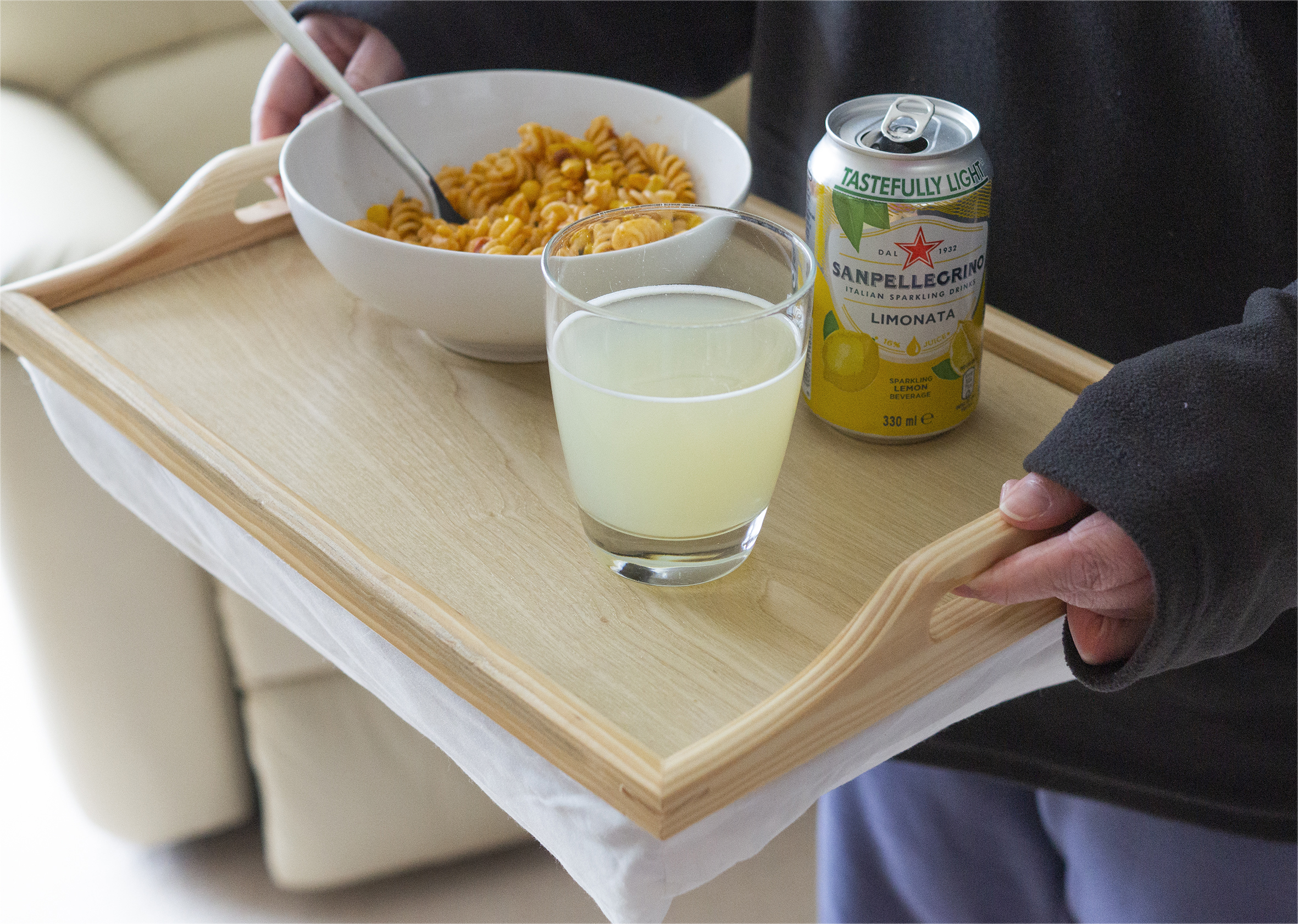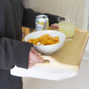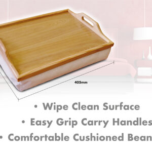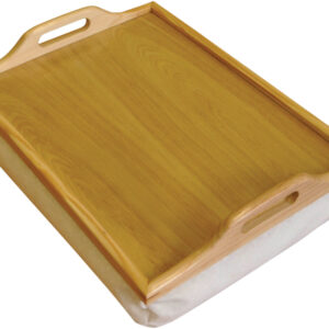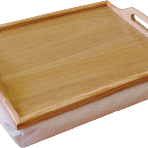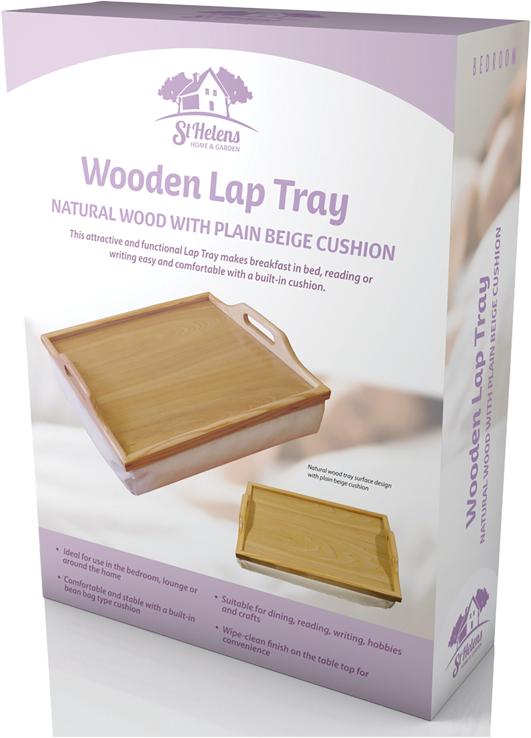 This attractive and functional lap tray from St Helens Home Garden makes breakfast in bed, reading, writing and crafts easier and more comfortable. The lap tray has a built-in cushion below the tray top meaning the tray will rest comfortably on your legs while you lie down or sit up. Finished in plain beige fabric with a natural looking wooden top. The tray is laminated for ease of cleaning. A built in carry handle makes it easy to carry and move from room to room whilst keeping your items safe on top.
