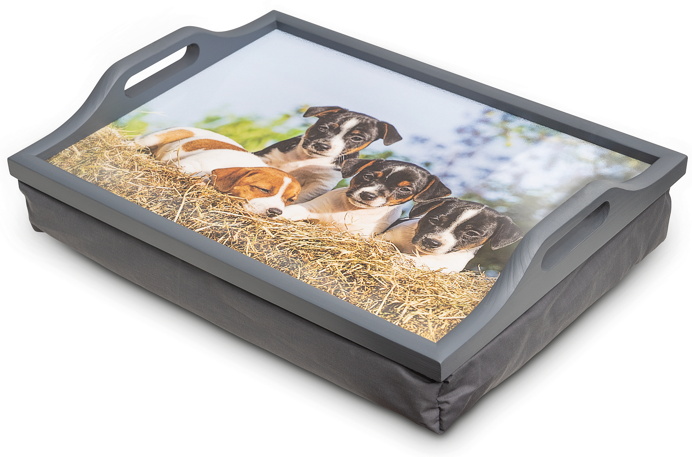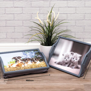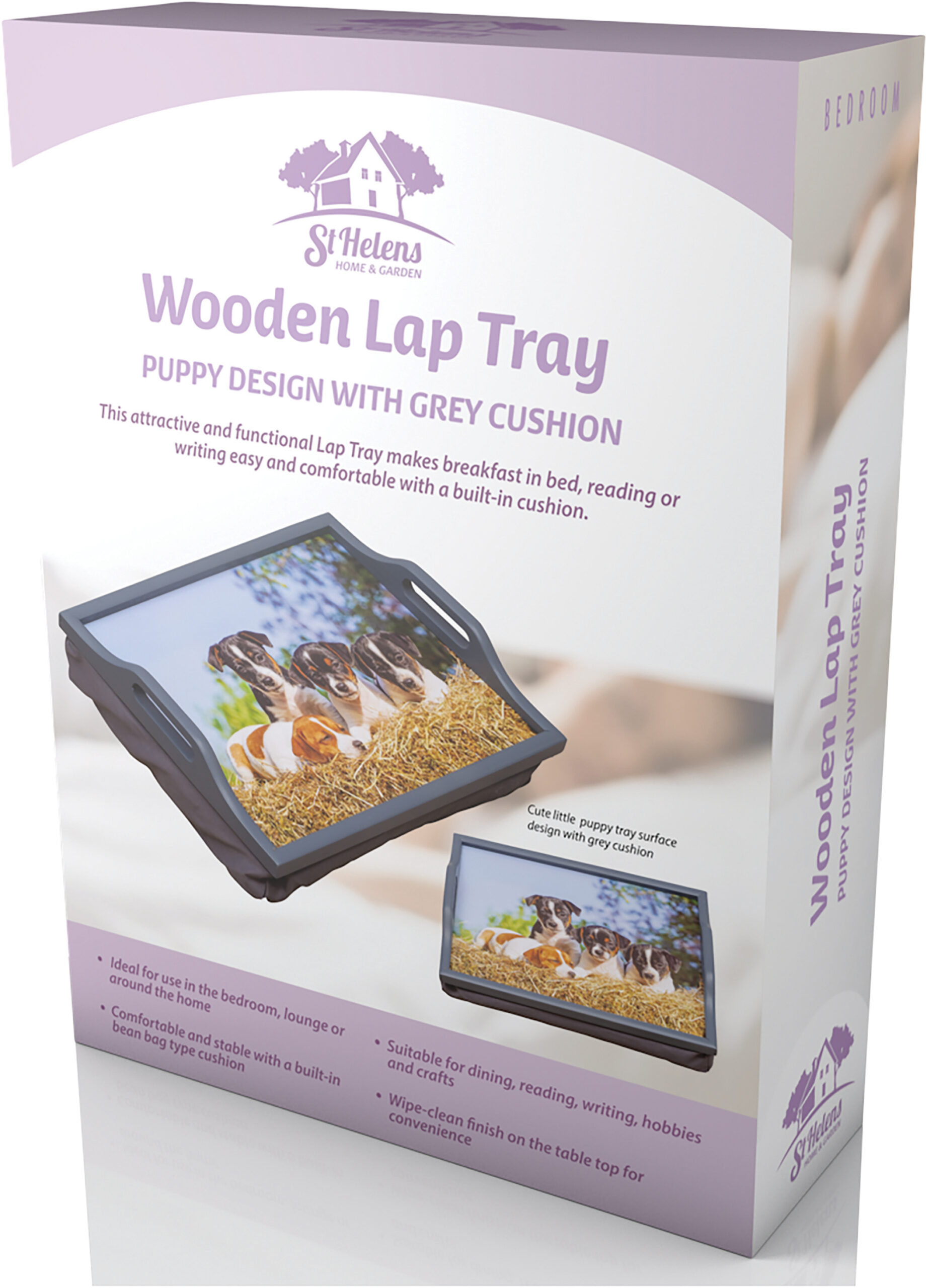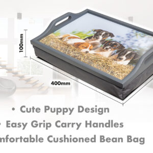 This attractive and functional lap tray from St Helens Home and Garden makes breakfast in bed, reading, writing and crafts easier and more comfortable. The lap tray has a built-in cushion below the tray top meaning it will rest comfortably on your legs while you lie or sit. The table top surface has a pleasant puppy design that will suit both modern and traditional homes and is laminated for easy cleaning. The tray features built-in handles making it easy and stable to carry.