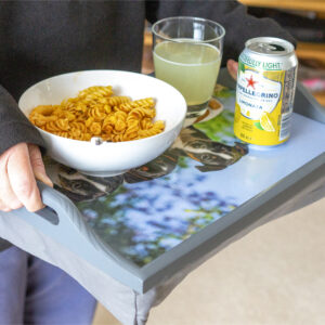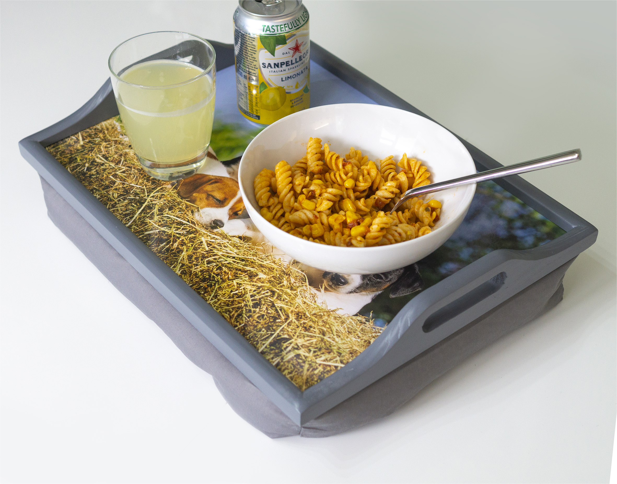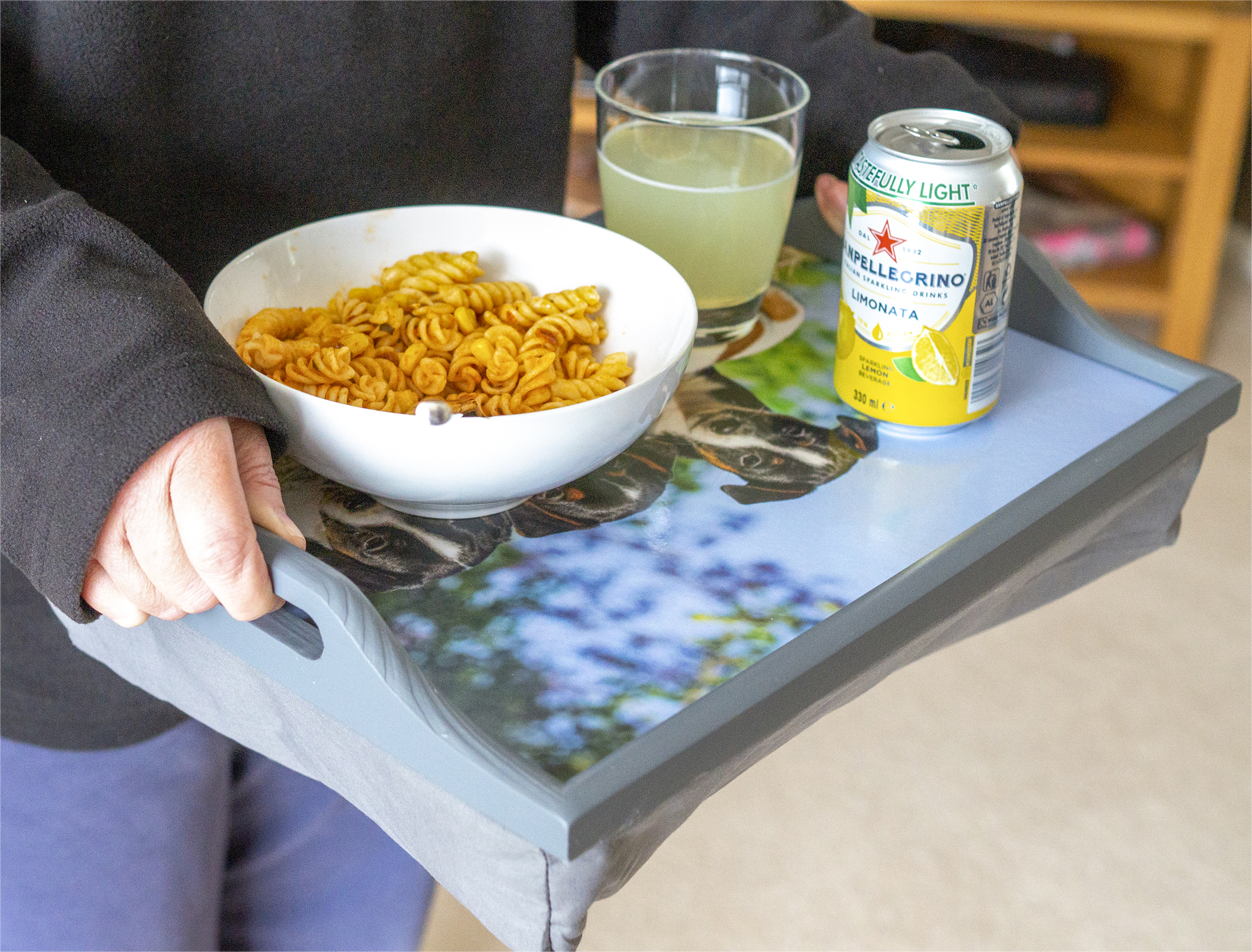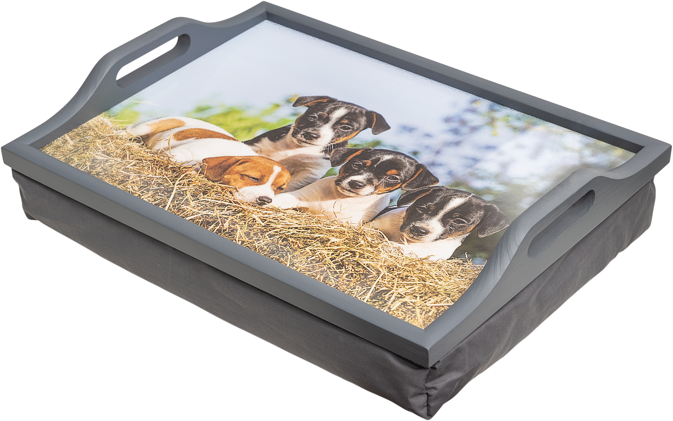 This attractive and functional lap tray from St Helens Home and Garden makes breakfast in bed, reading, writing and crafts easier and more comfortable. The lap tray has a built-in cushion below the tray top meaning it will rest comfortably on your legs while you lie or sit. The table top surface has a pleasant puppy design that will suit both modern and traditional homes and is laminated for easy cleaning. The tray features built-in handles making it easy and stable to carry.