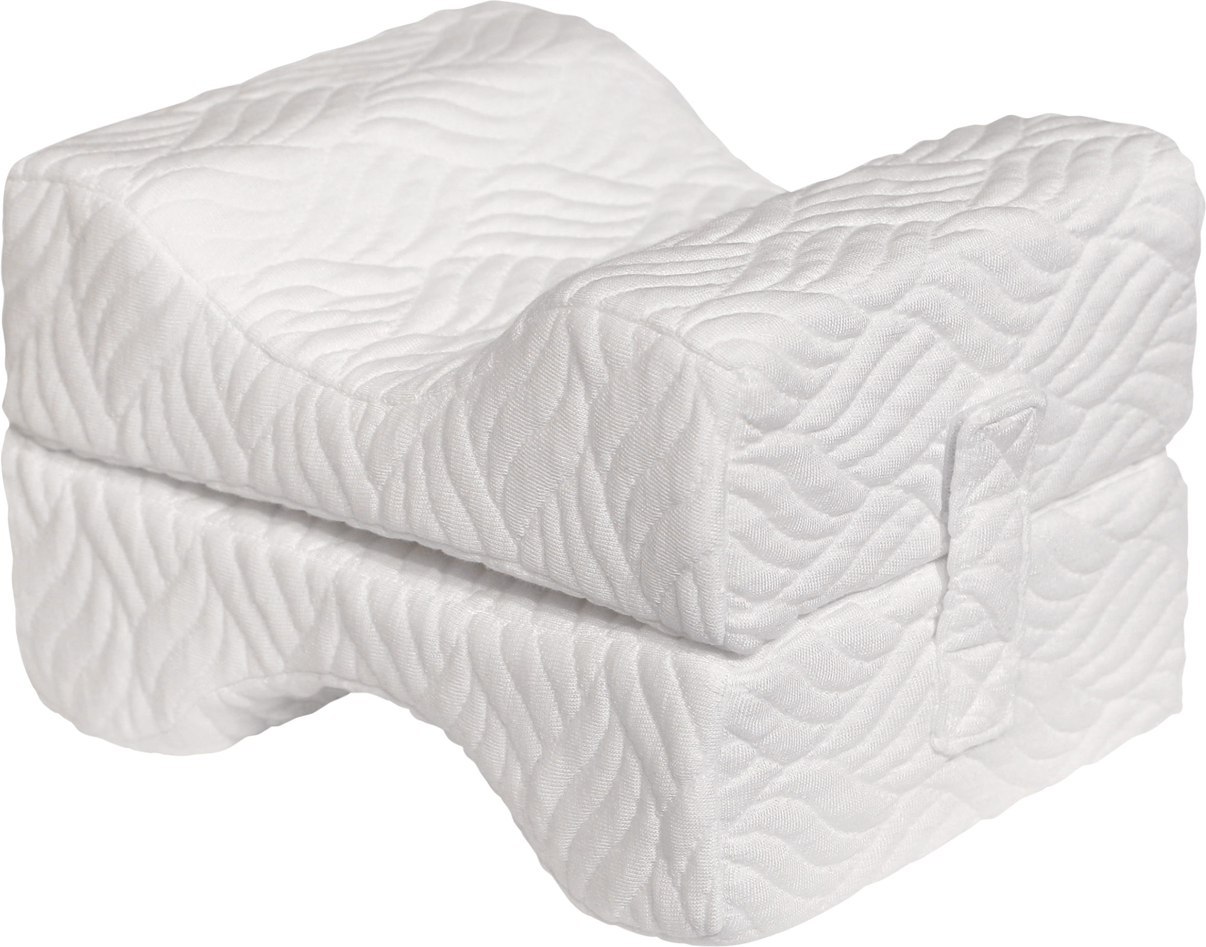 The luxurious Memory Foam Knee Pillow offers a variety of uses. It is ideal for side sleepers and helps to align your spine and hips relieving pressure on your sciatic nerve. It features an ergonomic design and can fit comfortably between your legs or thighs to provide support and comfort at night. It can also be unfolded to fit under your knees or ankles, or under your arms when reading a book. It has a hook and loop fastener to fold the pillow back up. It is made from a premium high-density memory foam and includes a breathable cover that is washable.