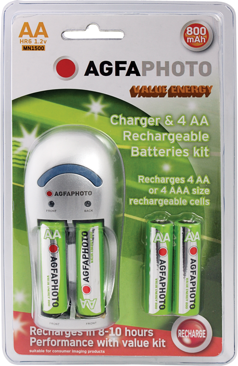 This great charger for AGFAPHOTO rechargeable batteries produces the power for all our high-energy digital devices. Sleek and powerful, they keep on charging time after time delivering an environmentally conscious solution to your power requirements. 4 x AA batteries are supplied, but this device can charge both AA and AAA rechargeable batteries.