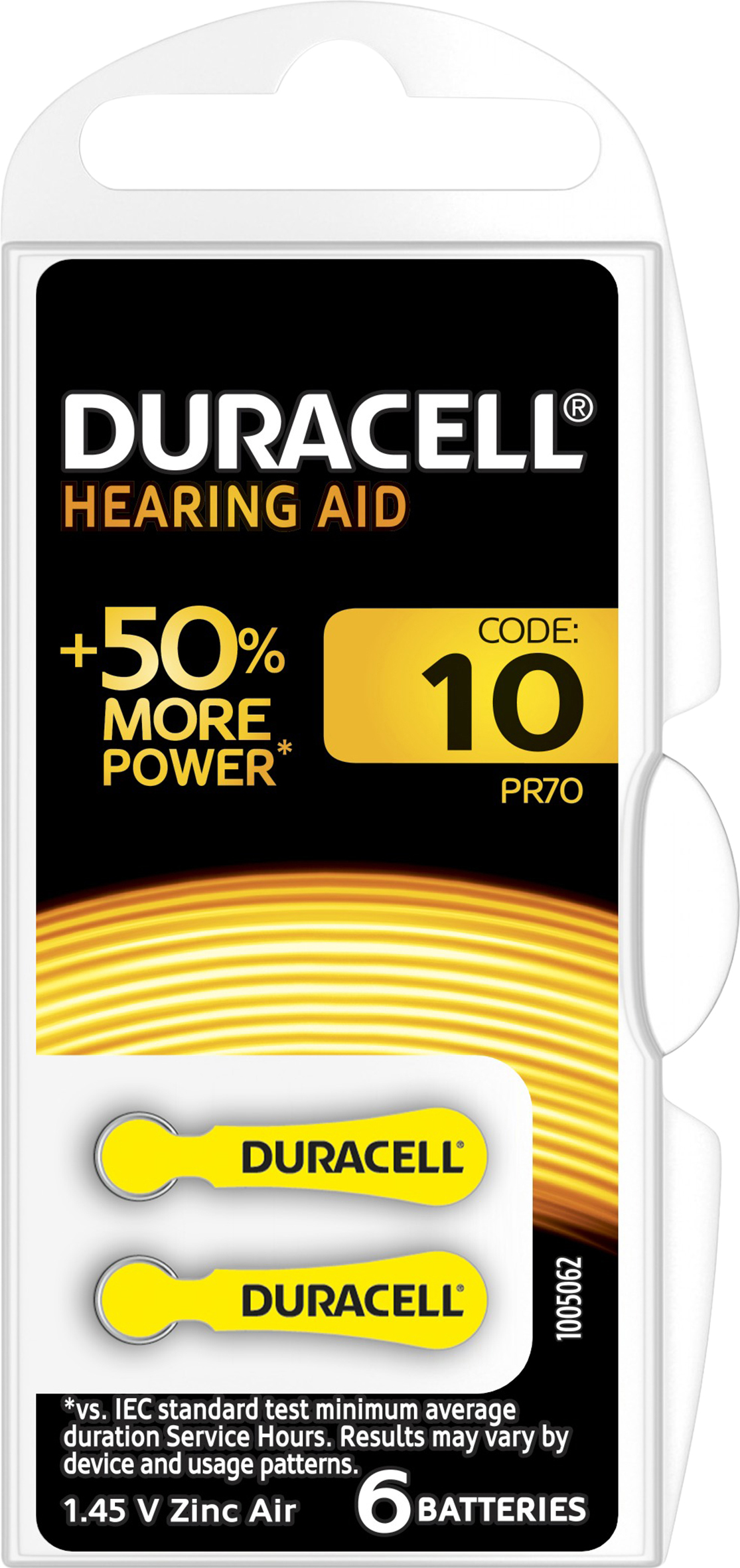 Hear every moment with long-lasting power in Duracell Specialty Hearing Aid batteries size 10 with EasyTab®. The EasyTab® is extra-long, so it’s simple to handle and replace, and its lightweight packaging is easy to open. Duracell Hearing Aid batteries with EasyTab® are colour-coded, making it easy to find the size that’s right for you. Plus, Duracell Hearing Aid batteries last up to 4 years in ambient storage. Contain 0% mercury.