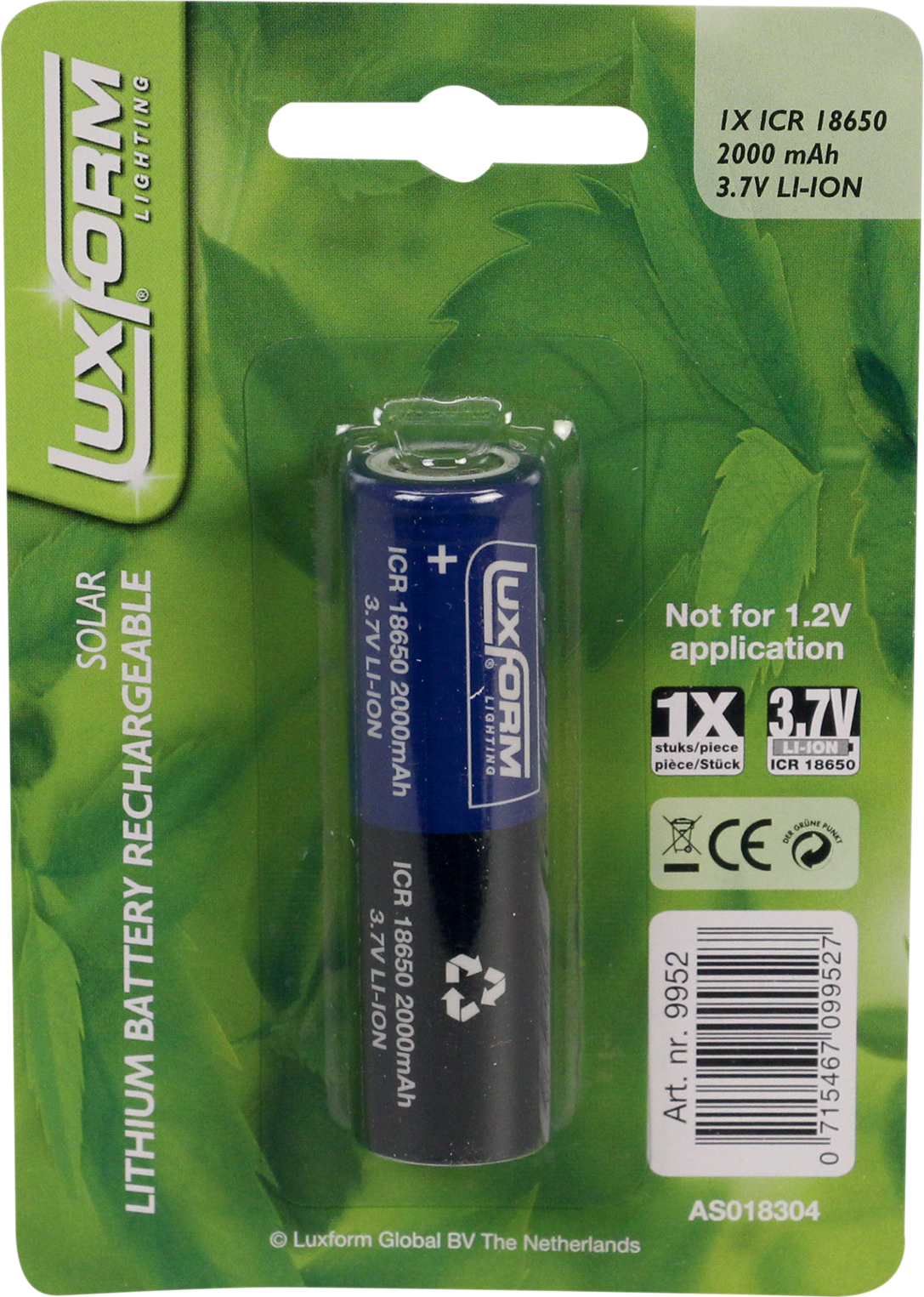 A Luxform Lighting 2000 mAH 18650 Rechargeable Battery