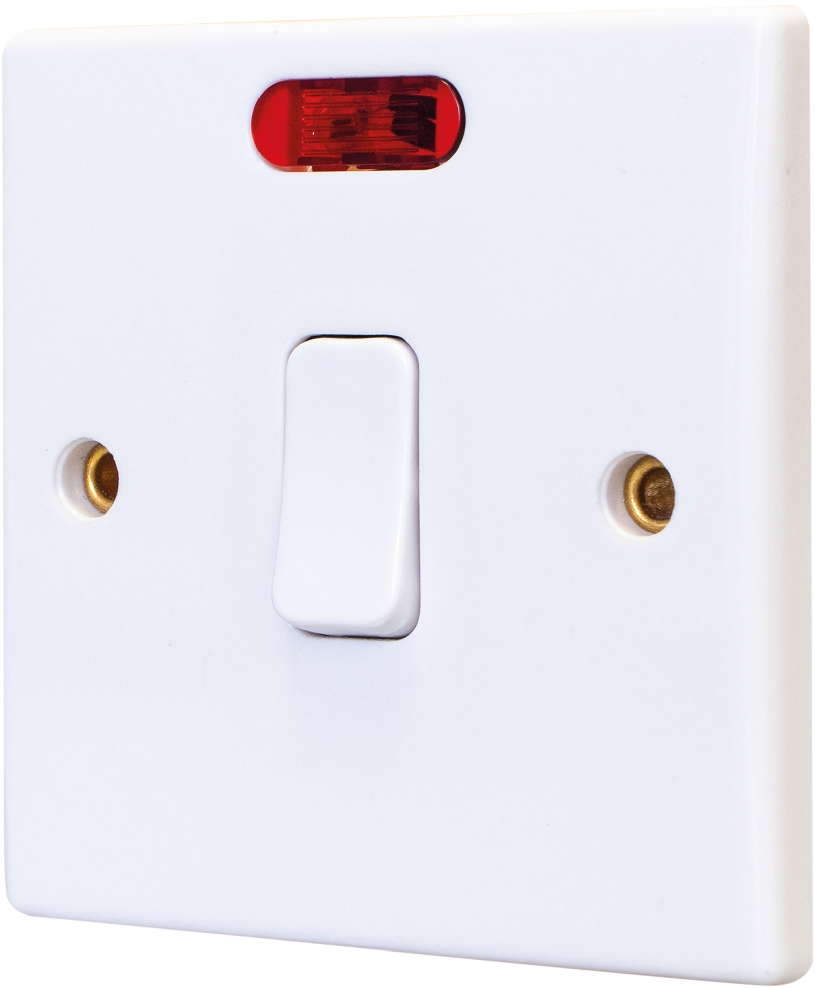 Screwed Faceplate. Minimum Back Box Depth Required 25mm. Operating Temperature -5dC to 40dC. Plate material Urea. With Neon indicator