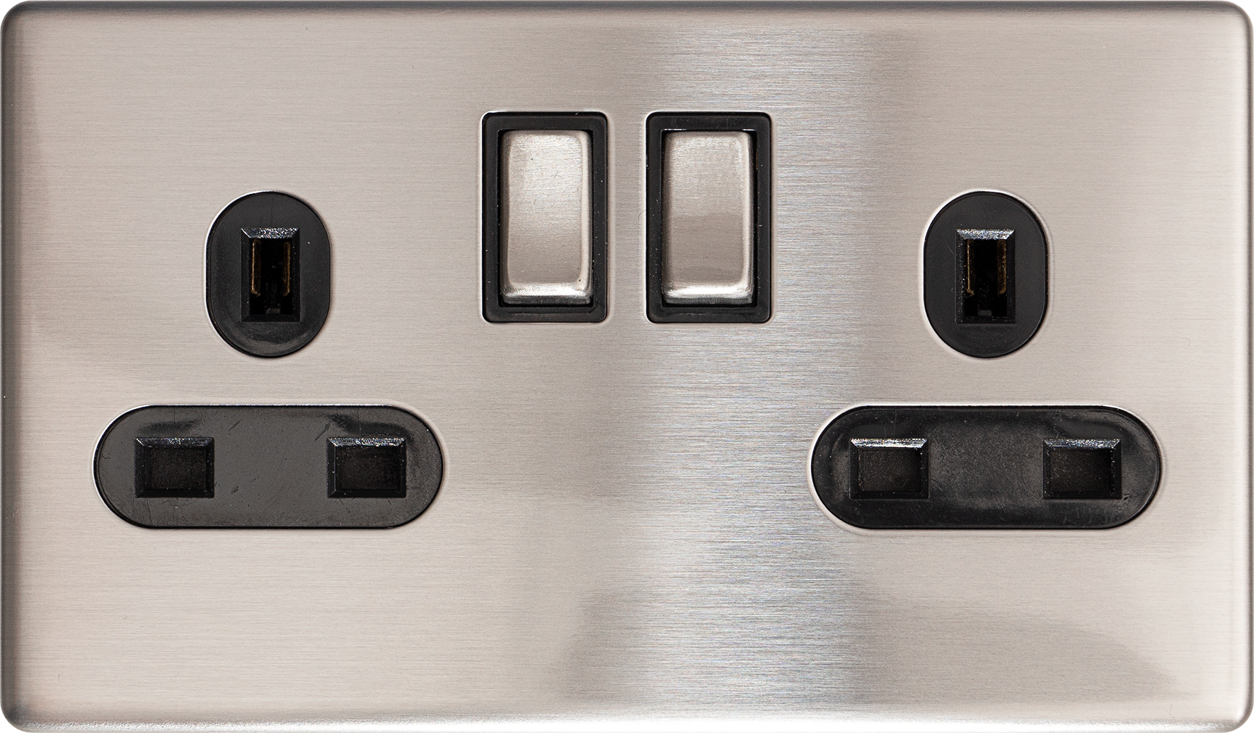2 Gang 13A Double Pole Switched Socket Screwless Plate with Brushed Chrome Finish