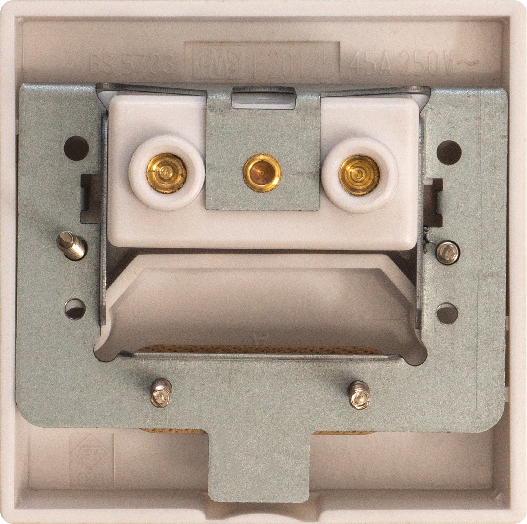 45A Cooker Outlet Plate Curved Edge. Plate Material: Urea. Screwed Plate. Operating temperatures -5dC – 40dC.