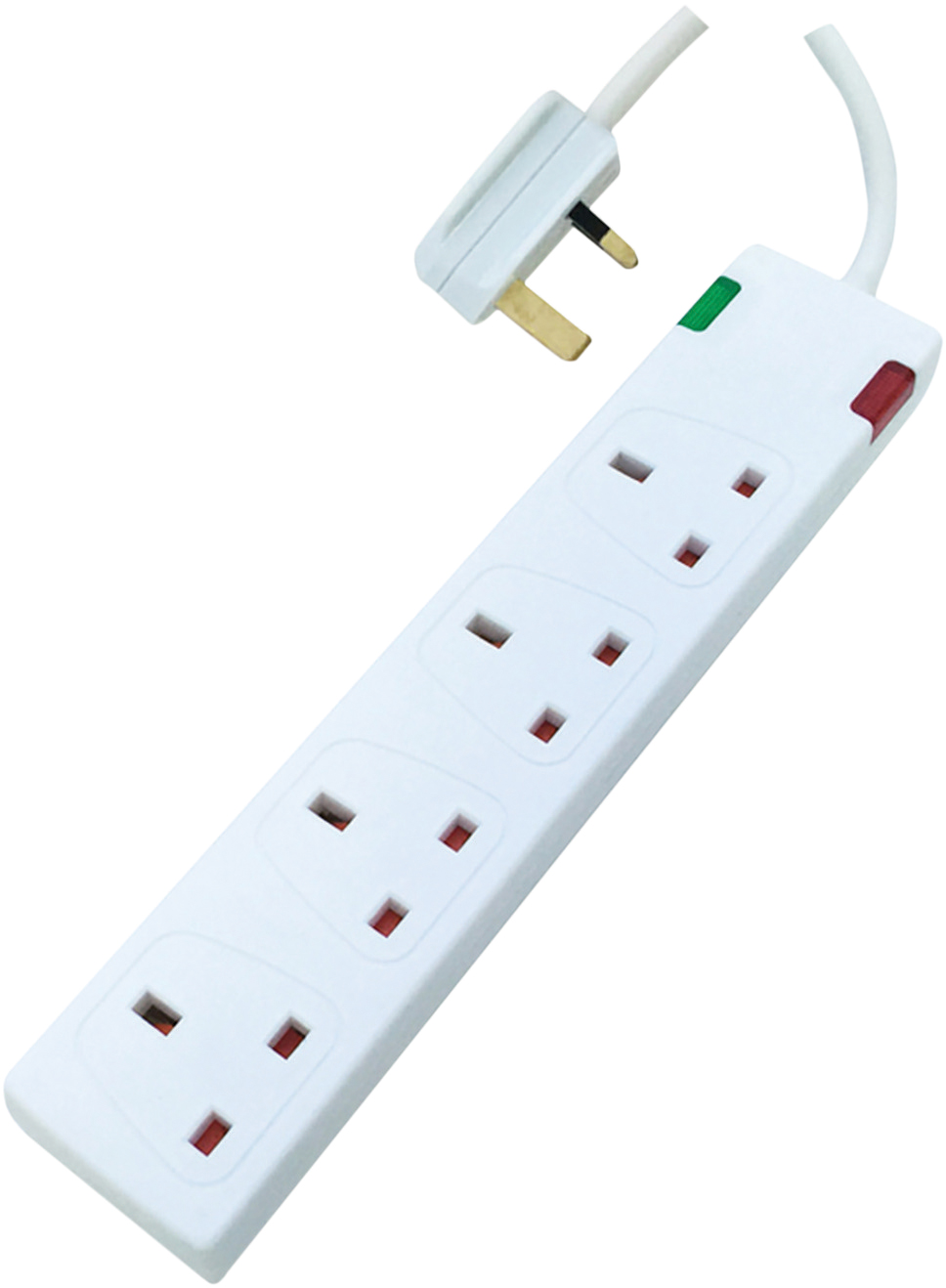 4 Gang surge protected extension socket with Neon Indicator fitted with a 13 A plug