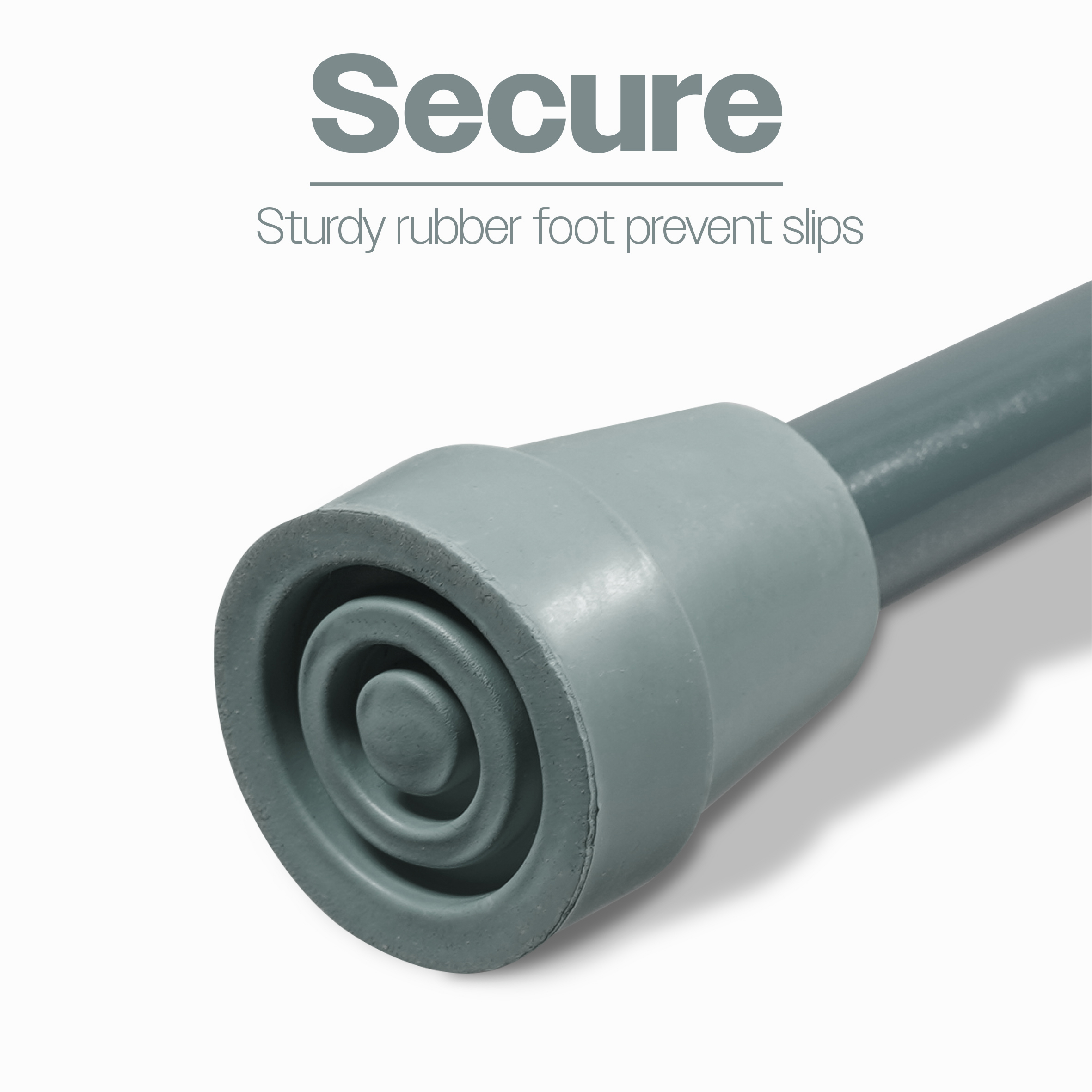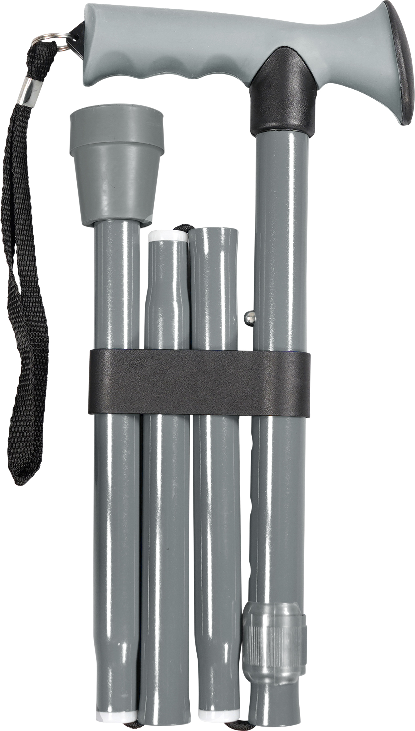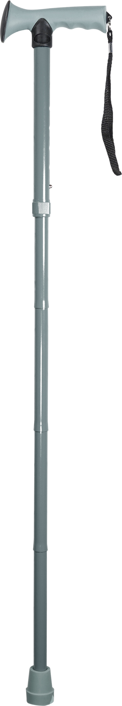 An extendable, rubber handled walking stick with 5 height adjustment settings for use with either hand. Featuring a rubber handle, the walking stick and handle has an all-over colour with a black material wrist strap. The folding walking stick is easily slipped into a bag, pocket or drawer for storage or travel. It is made of sturdy, lightweight aluminium with an ergonomically-designed rubber handle and a soft, durable rubber tip for safety and comfort. Available in several fresh colours to suit all tastes. Maximum user weight limit 100kg.