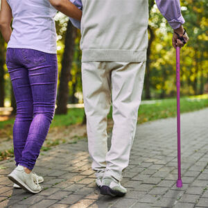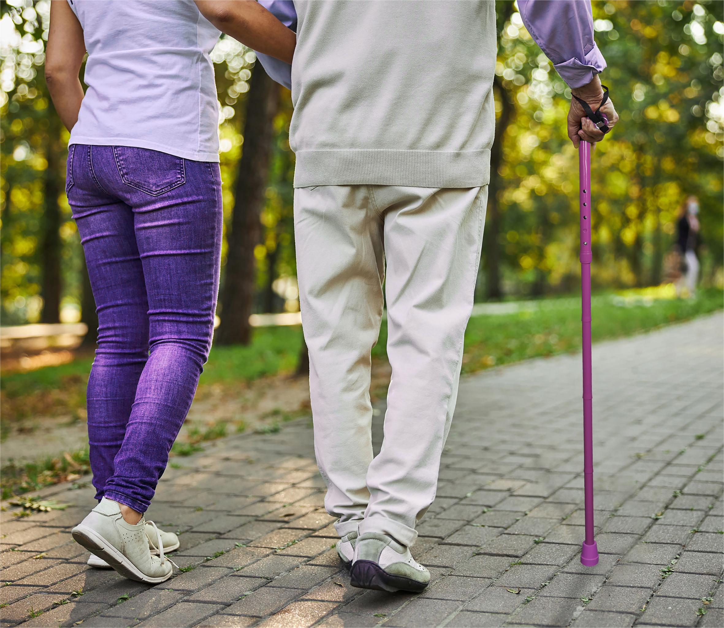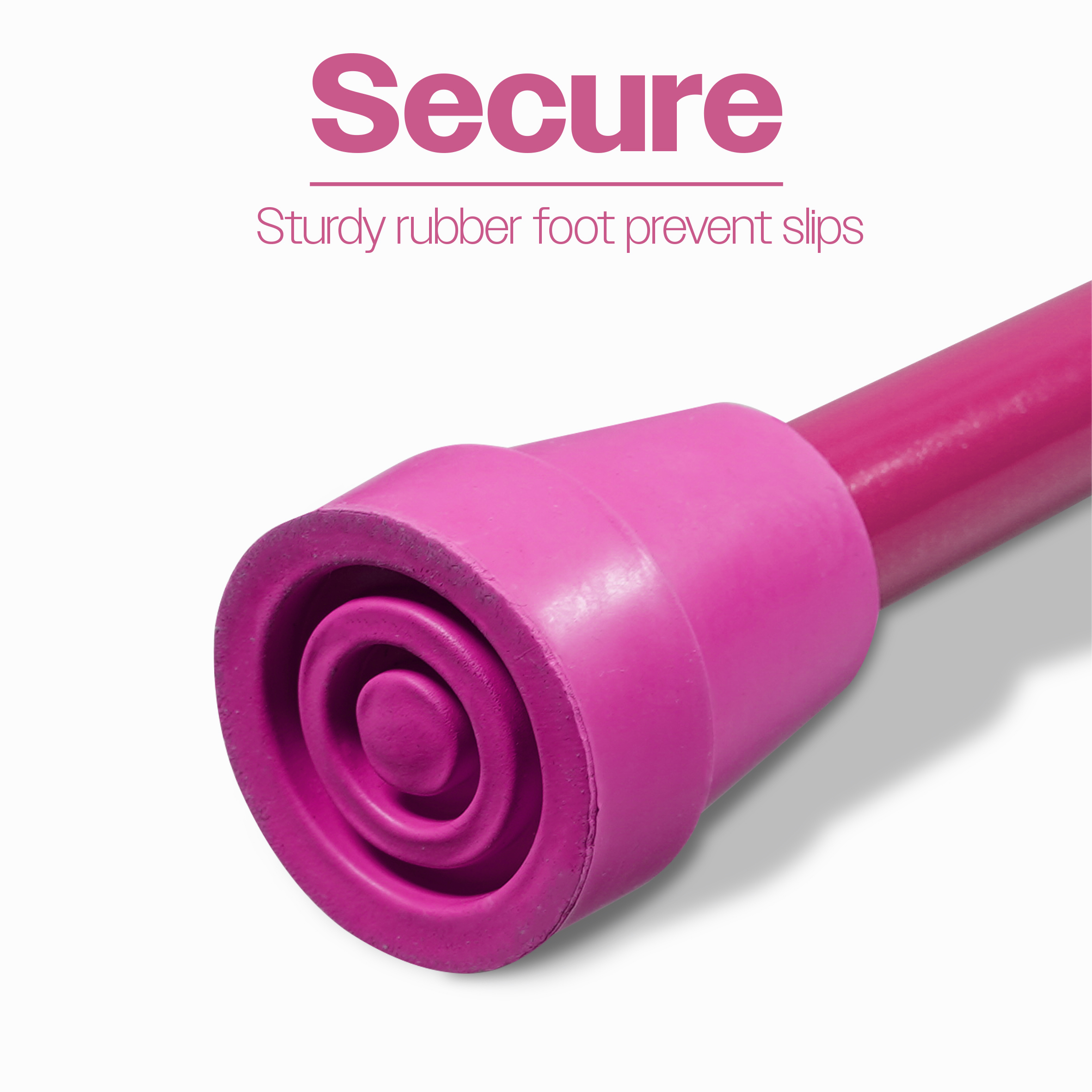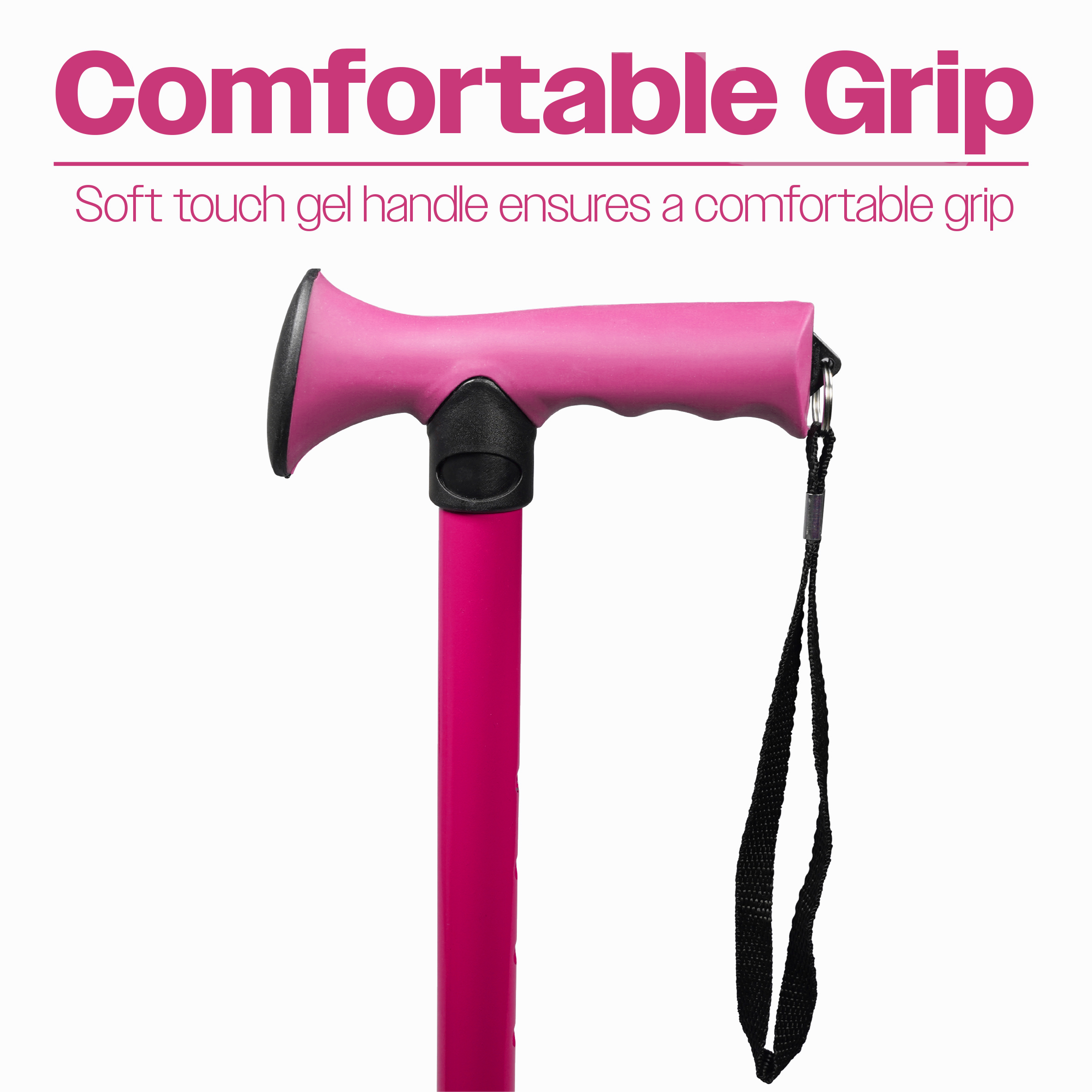 An extendable, rubber handled walking stick with 5 height adjustment settings for use with either hand. Featuring a rubber handle, the walking stick and handle has an all-over colour with a black material wrist strap. The folding walking stick is easily slipped into a bag, pocket or drawer for storage or travel. It is made of sturdy, lightweight aluminium with an ergonomically-designed rubber handle and a soft, durable rubber tip for safety and comfort. Available in several fresh colours to suit all tastes. Maximum user weight limit 100kg.