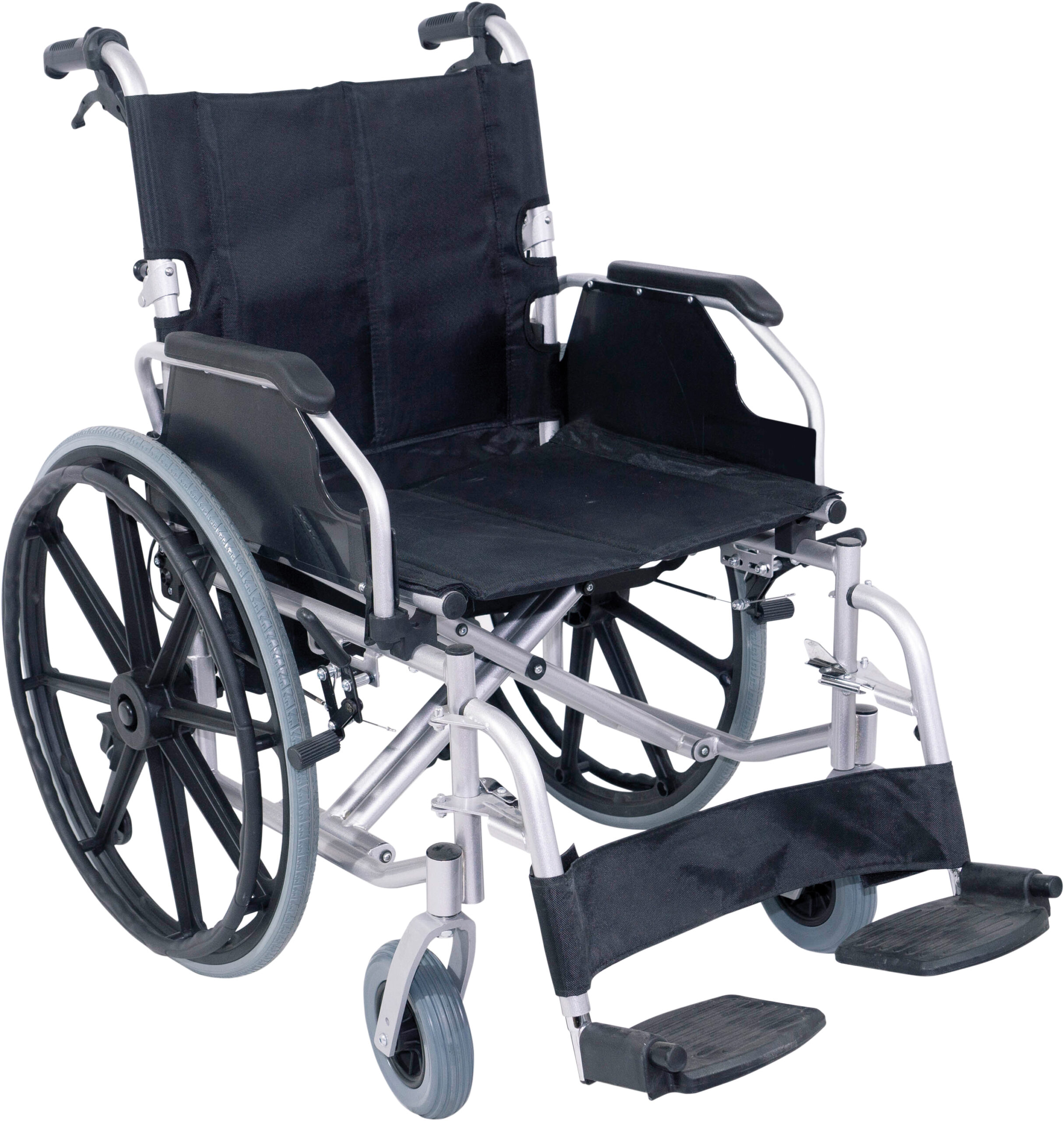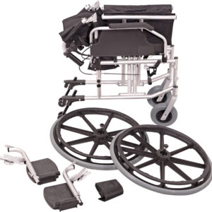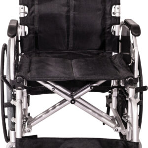 The Consort Deluxe Self Propelled Steel Wheeled Chair from Aidapt. Made from high grade durable steel with a double cross bar for strength. The Consort offers ease of movement for the user and quick-folding mechanism for trouble-free transportation. Features include quick release rear wheels, flip up armrests, 20″ wide padded seat for comfort, hand brakes for the carer, anti tilt wheels at the rear, PU armrests, foldable backrest and detachable footrests. Maximum user weight limit 180kg (28St).