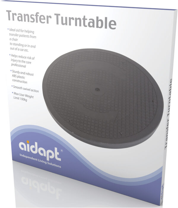 This strong yet lightweight Transfer Turntable from Aidapt provides smooth and easy rotation in any direction. The transfer aid assists the carer to transfer a patient safely from a chair to bed, into and out of a car, etc., and helps avoid back strain. The Transfer Turntable can also comfortably assist those with limited mobility to transfer themselves.