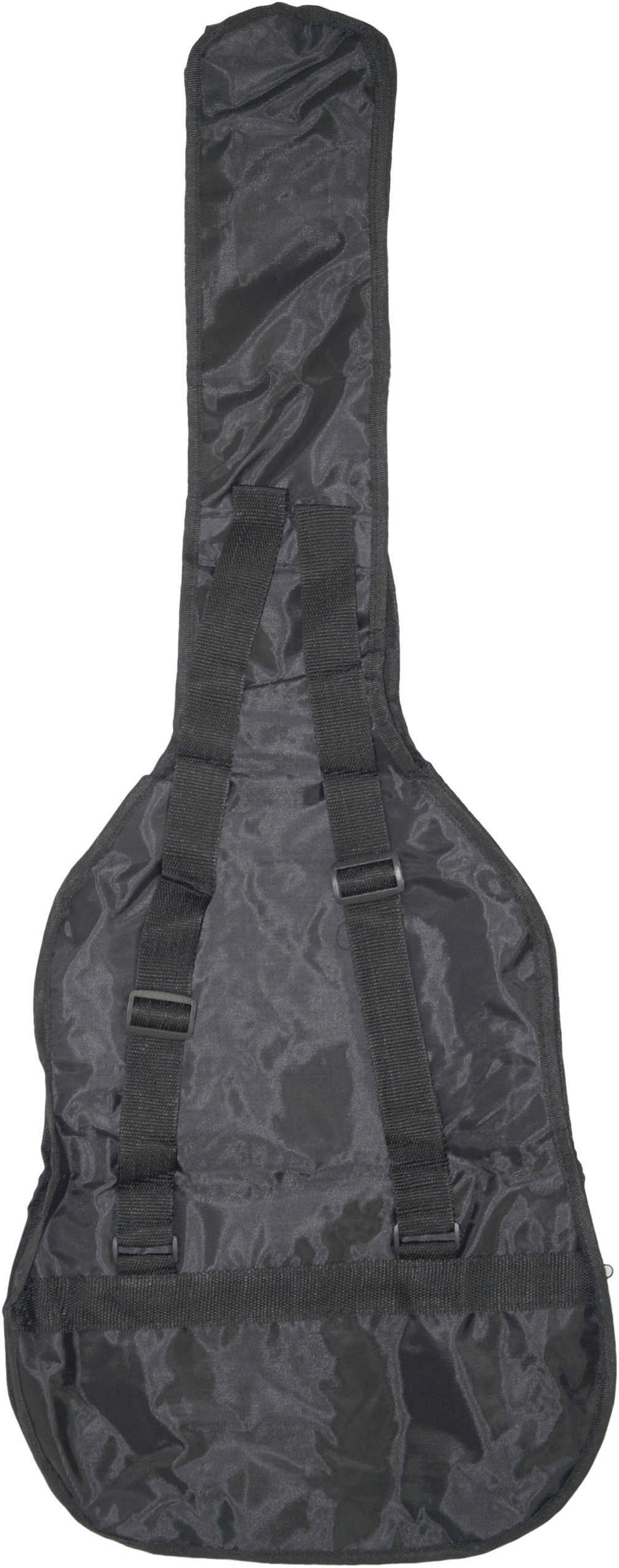 Hard wearing nylon acoustic guitar case with zip up instrument compartment. The product further features a large easy access zip up accessory compartment, durable carry handle, back-pack style adjustable straps for shoulder/back mounting. The product is suitable for most acoustic guitars.