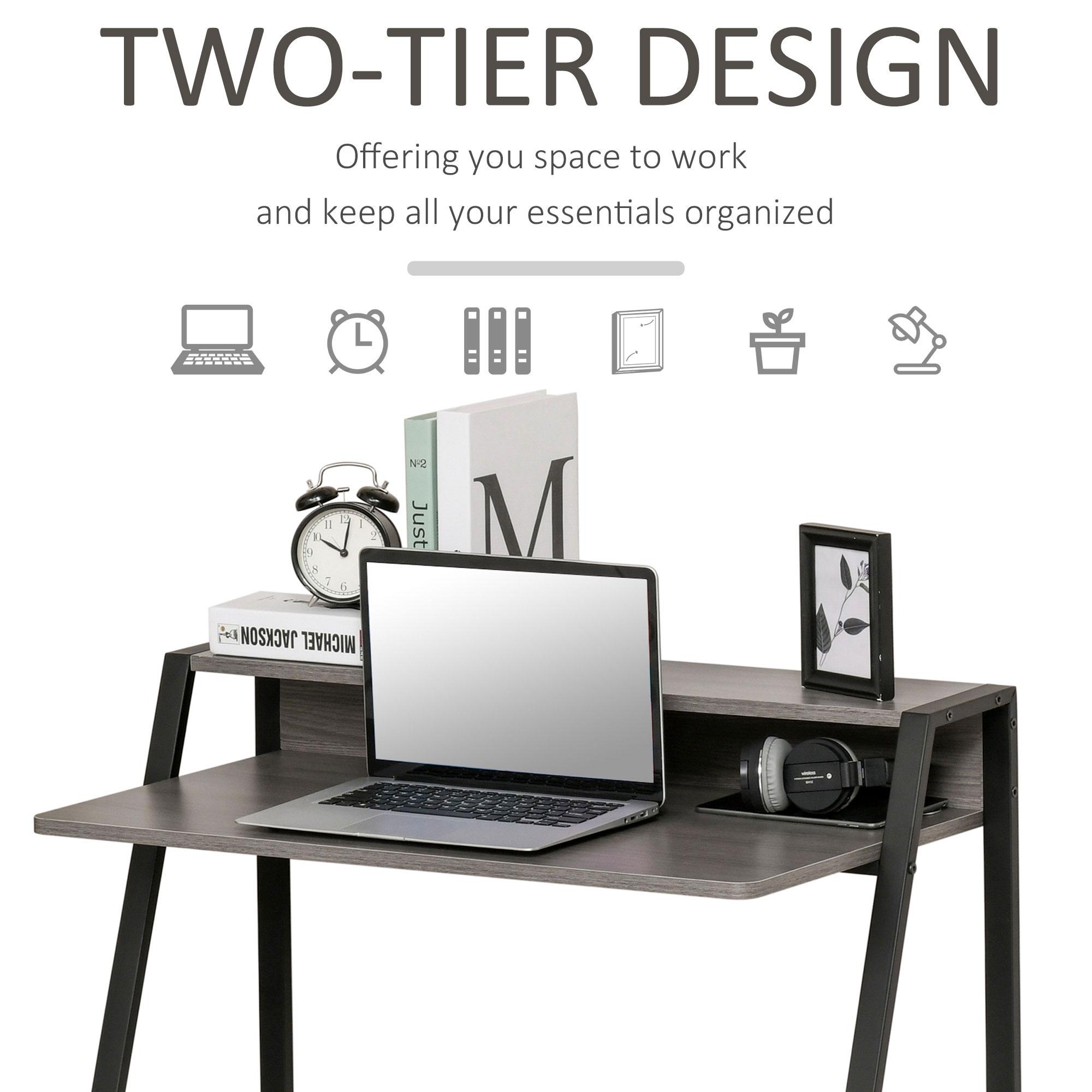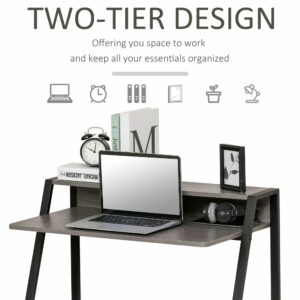 - Two-tier table top design, gives room to work and keep your office essentials within easy reach