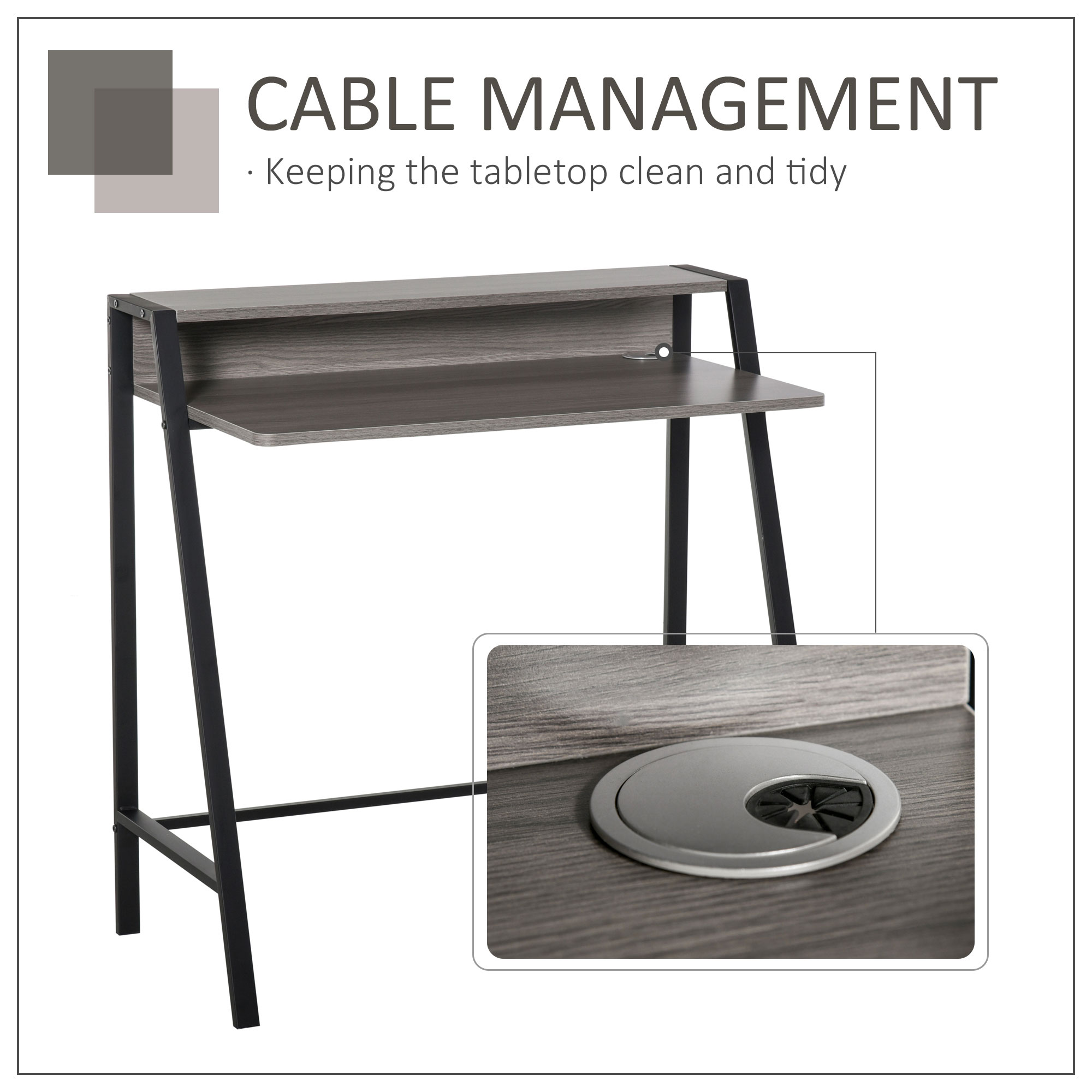 A minimalistic design, finished in a fresh and neutral colourway – this pc desk, from HOMCOM, will welcome itself into your home or office space with ease. Using solid steel for a frame which keeps itself balanced, it’s fitted with a board table top, which comes in a two-tier design: the main level gives you plenty of room to work, whilst the back shelf allows for storage of your working essentials. It’s finished with a melamine coating for light protection, as well as being easy to clean.