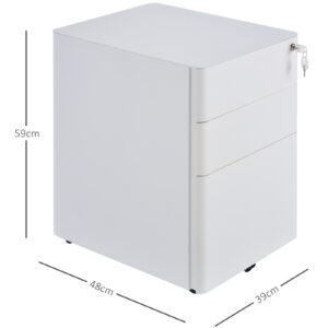 Keep your important paperwork organised and with this metal filing cabinet from Vinsetto. Spacious in size, it features two small drawers and a large bottom drawer – perfect for all your paperwork and other office supplies. On the bottom, four omni-direction wheels are placed for you to move the unit around easily and a middle wheel to prevent the unit from tipping over. Finished with a lock to keep everything safely secure when you’re away.