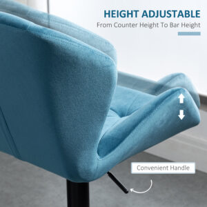 HOMCOM Bar Stools Set Of 2 Luxurious VelvetTouch Barstools w/ Metal Frame Footrest Round Base Triangle Indenting Moulded Seat Adjustable Height