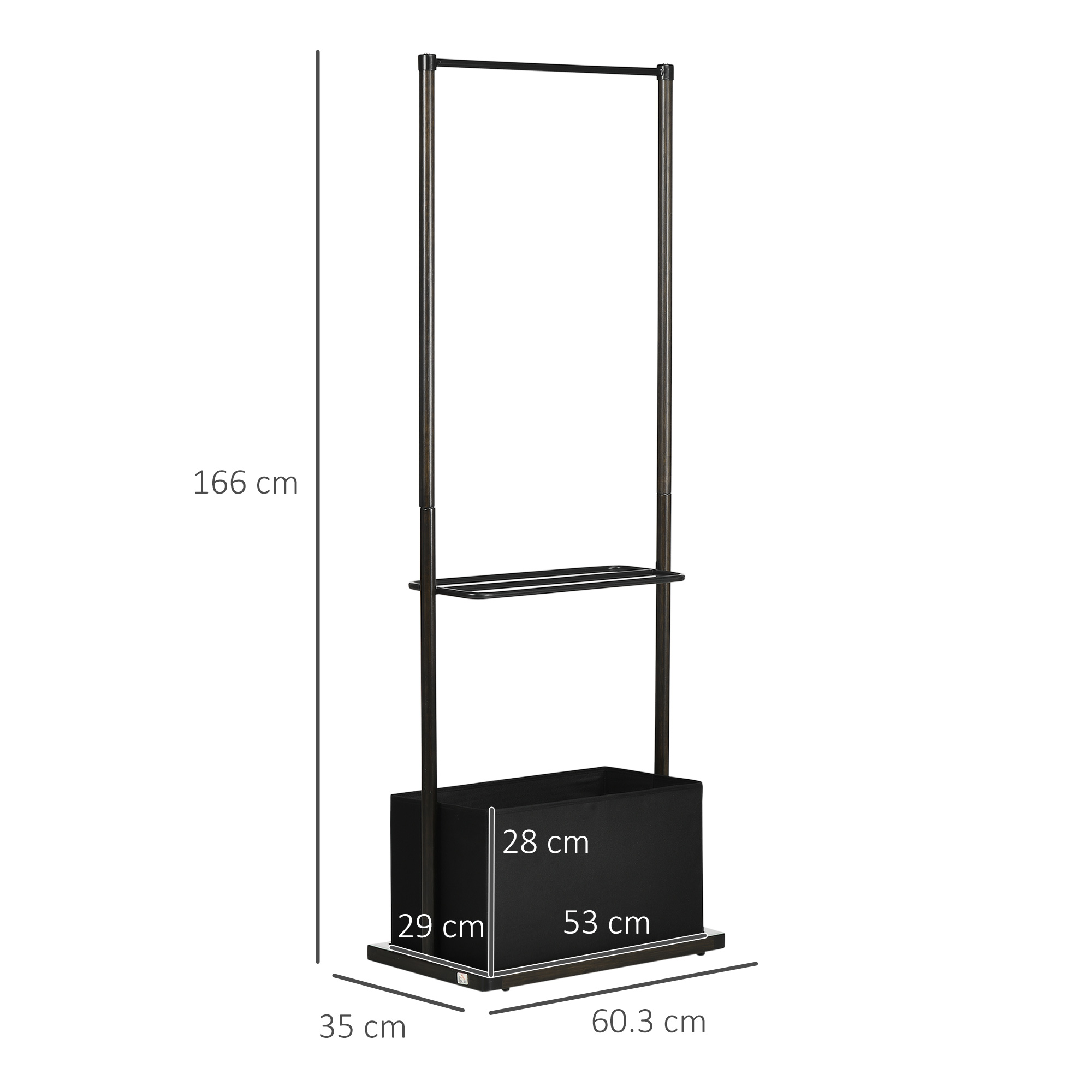 HOMCOM Clothes Rail, Bamboo Coat Stand, Garment Rack with Open Shelves and Fabric Storage Box for Bedroom, Hallway, Walnut