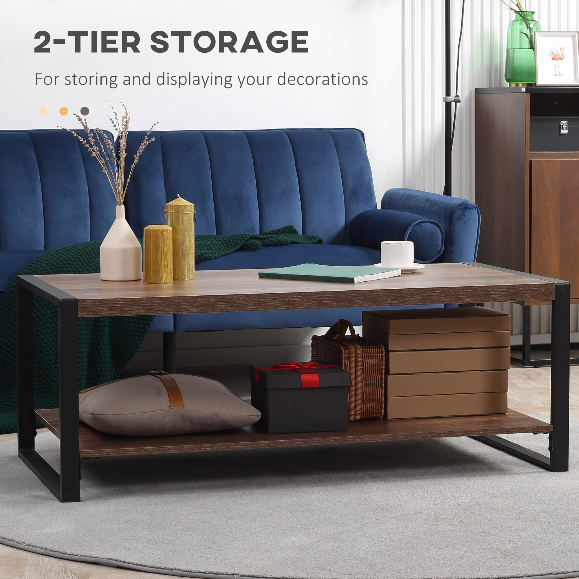 A classic piece, with an industrial upgrade: look to this HOMCOM coffee table. Formed of a top and bottom shelf, which gives you plenty of storage and display room. A steel frame for strength, the black finish pairs with the dark wood-effect table tops for a striking industrial look – a great way to bring character into your home, instantly.