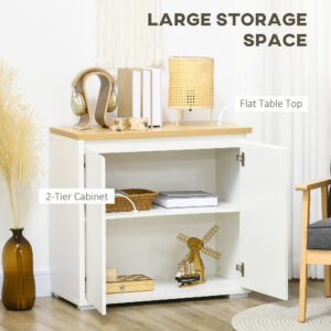 Keeping it modern is this HOMCOM freestanding cabinet. It places a wood-effect table top on a white body – a classic and simple design which stands well in plenty of home and office spaces. Open the doors and you have a three-level adjustable shelf: this creates two storage areas ?? plenty of room! The flat top gives you display room. Complete with anti-tipping straps to secure safely to a wall.