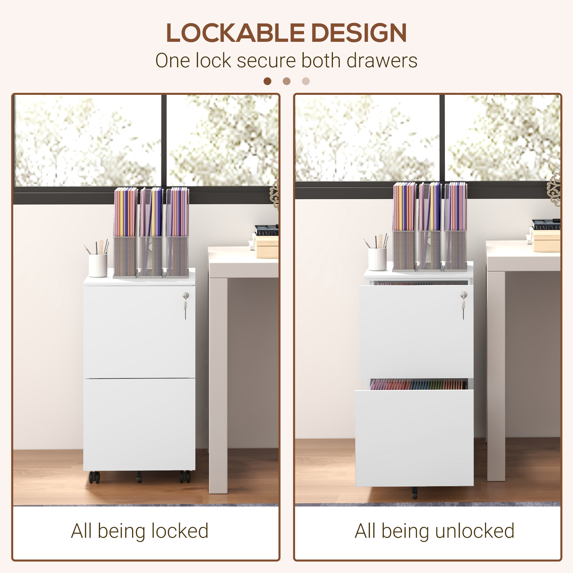 Easy and protected storage for the office – this Vinsetto filing cabinet. Made from steel, this is a strong and durable piece – it’s made to be used everyday and is a safe shield for the inner contents. It comes with two drawers, so you can keep files stored and organised. The top lock keeps the two drawers locked at the same time, so you don’t have to worry about unwanted people accessing inside when you’re not around – two keys included.