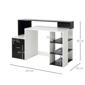 This HOMCOM study desk with storage combines contemporary design with highly efficient storage capabilities. A vertical platform with multiple shelves sits opposite 2 easy glide drawers with metal sliding rails and aluminium alloy handles. With a printer shelf and several bookshelves, in addition to a large surface space to ensure that you’ll never run out of room for all your desktop essentials. Increase your productivity and peace of mind with the latest office furniture offering from HOMCOM.