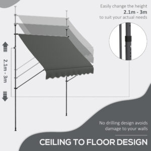 Bring shelter into your outdoor space when needed, thanks to this Outsunny free standing awning. The aluminium and metal blend frame means a strong standing structure. Manually operated via the handle, the awning is adjustable between 0 – 90?¨: set to a position of your choice. The 2.1m to 3(m) adjustable frame allows you to set to a height you want.