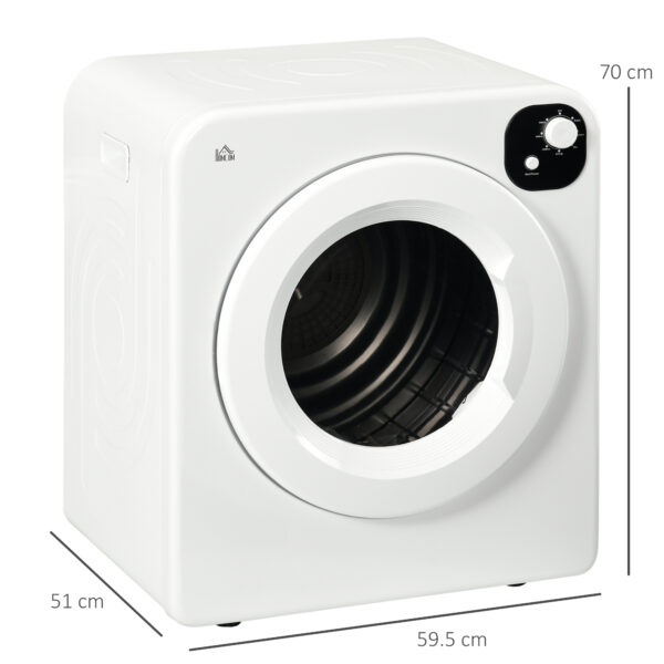 Drying clothes no longer means laundrettes trips. Bring in this HOMCOM compact tumble dryer. Weighing only 27kg, it can easily be mounted to the wall, placed on top of your washing machine or left standing alone: the choice is yours. It features seven modes to dry clothes different ways. Its 6kg capacity holds the equivalent of 15 t-shirts, one duvet set and 35 smaller towels at once – great for personal use! All you need to do to is load, press the button and wait for perfectly dry clothes.