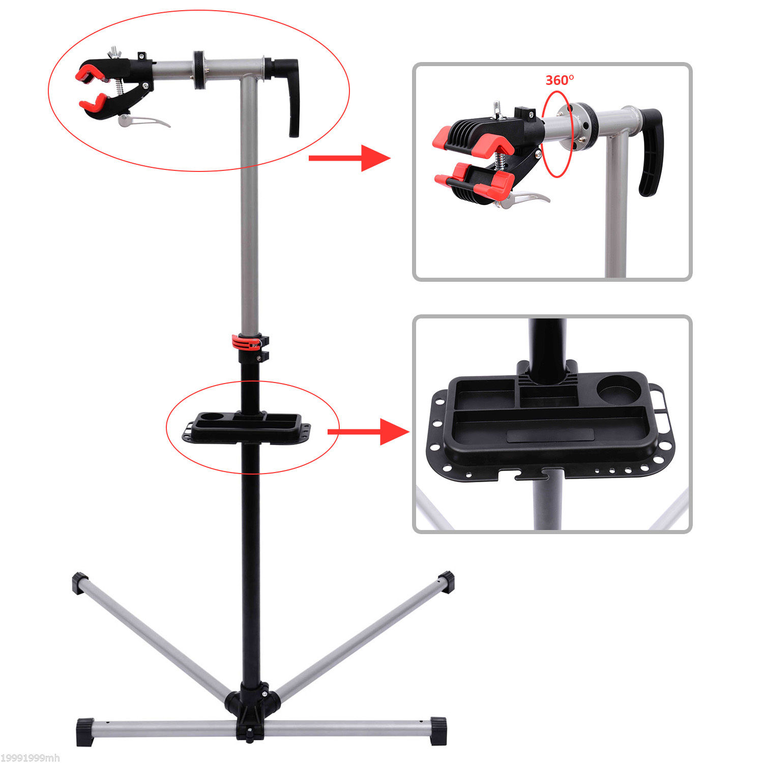 This Homcom brand professional new bike stand clamps your bike in its jaws; the two pivots and height adjustment give maximum flexibility for working angles. The Clamp has rubber grippers so it doesn’t damage your bike. The fixed legs are really designed as a workshop stand that doesn??t require moving.